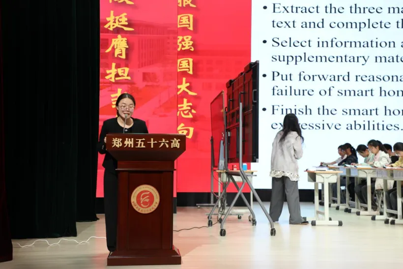 观摩课结束后,郑州市第五十六高级中学英语学科负责人刘颖川老师首先对远道而来的各位外语教学同仁表示诚挚感谢,然后指出,本节课李老师进行多轮教研打磨,初期拟定为群文阅读课,旨在引导学生辩证探讨人工智能对生活的影响。磨课后,结合高一学生学情与阅读能力培养需求,优化调整文本内容,精简为三篇难度适配的短文本,明确以信息提取、方案设计与批判性探讨为核心教学目标,课程教学基本达成预设成效。在之后的教学实践中,我们也将继续聚焦关键能力培养,赋予课堂更多思辨与探究空间,切实培养学生核心素养。