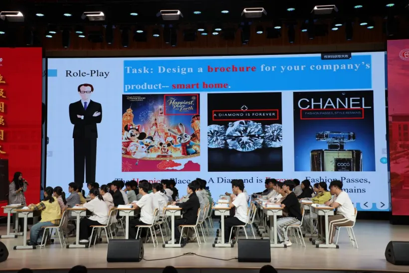 读中环节,李老师紧扣“设计产品推广册”的课堂主线,设计了多元支架与阶梯式任务。学生在提示词引导下快速阅读文章,精准定位智能家居三大优势的具体内容,完成册子上的第一部分;再让学生进行分享,及时纠正学生的语法错误并进行具体有效的反馈。