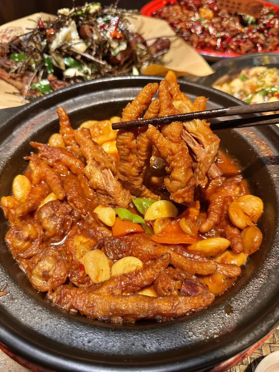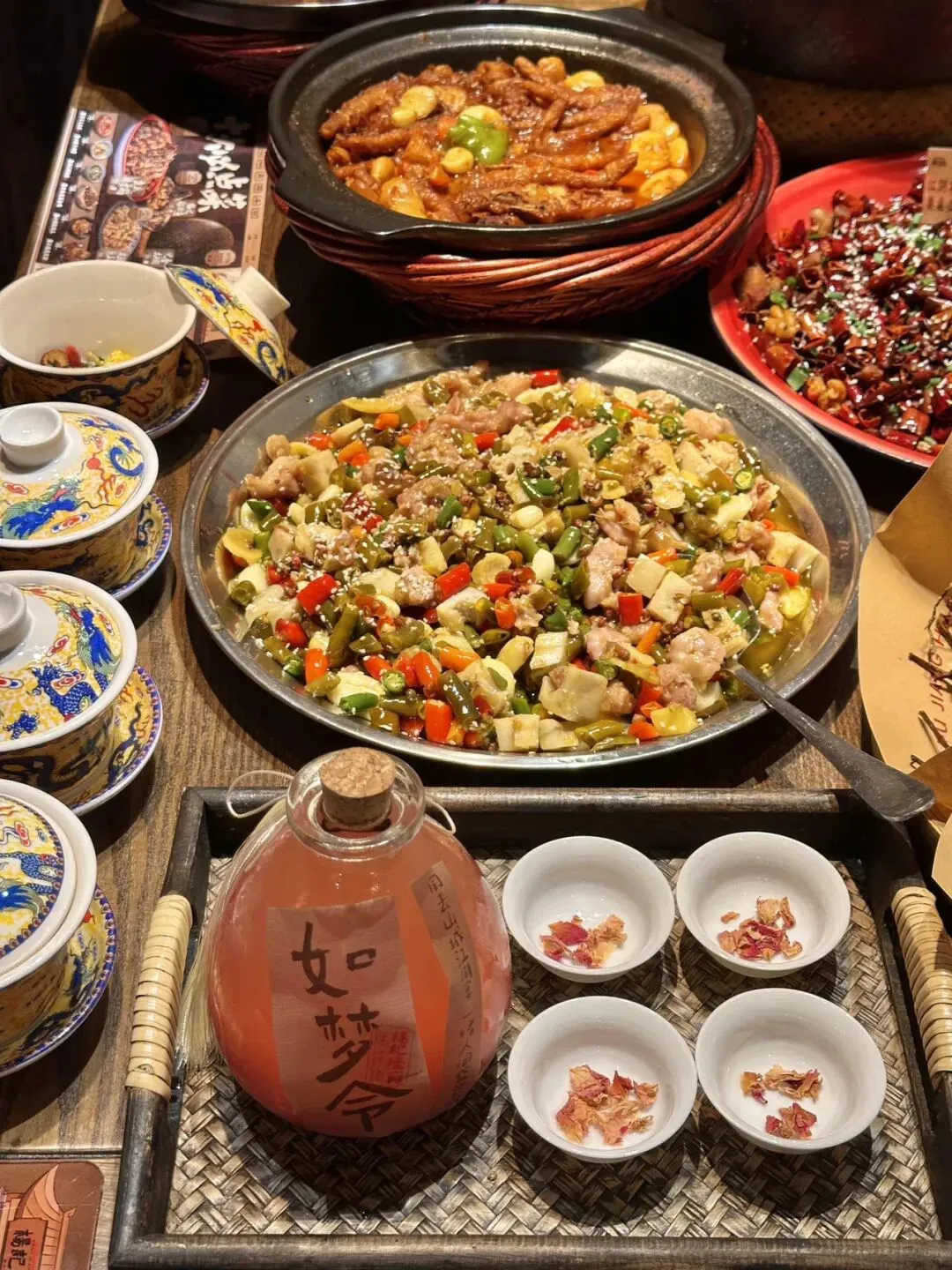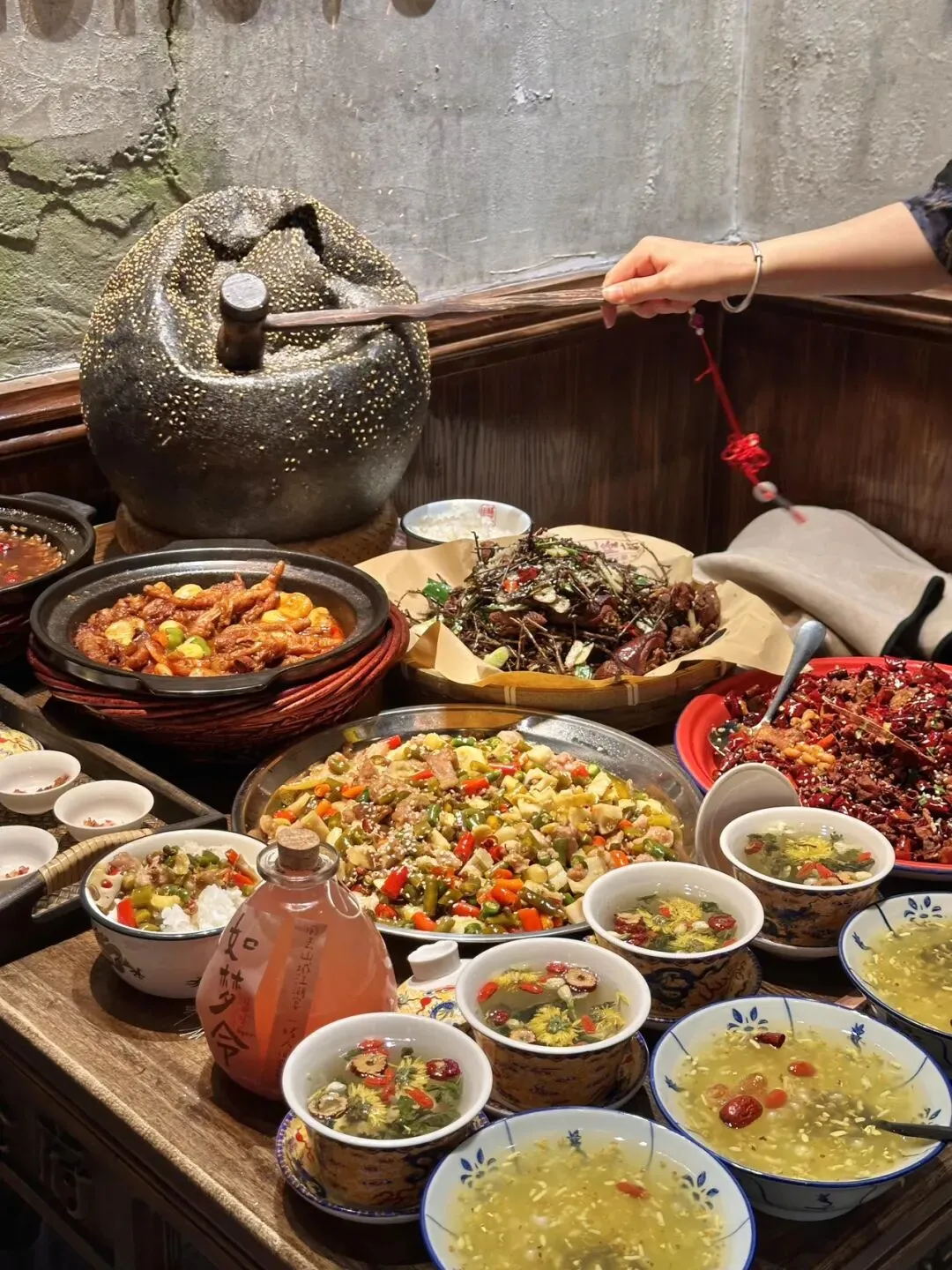 巨大版的!麻团 !plus!!!现场表演的八宝茶!!ju香!!!黄金大麻球都是现炸的!🌕酥酥脆脆的!这么大的麻圆还是第一次见!老味道茶香鸭!重庆味道辣子鸡!还有民国霸王兔!!都是招牌!😭每个都量大 好吃!!闭眼点都不踩雷!红糖阴米粥黏糊糊的!一个人喝了一大碗!🍯打卡 song的冰粉也可好吃!🍮-