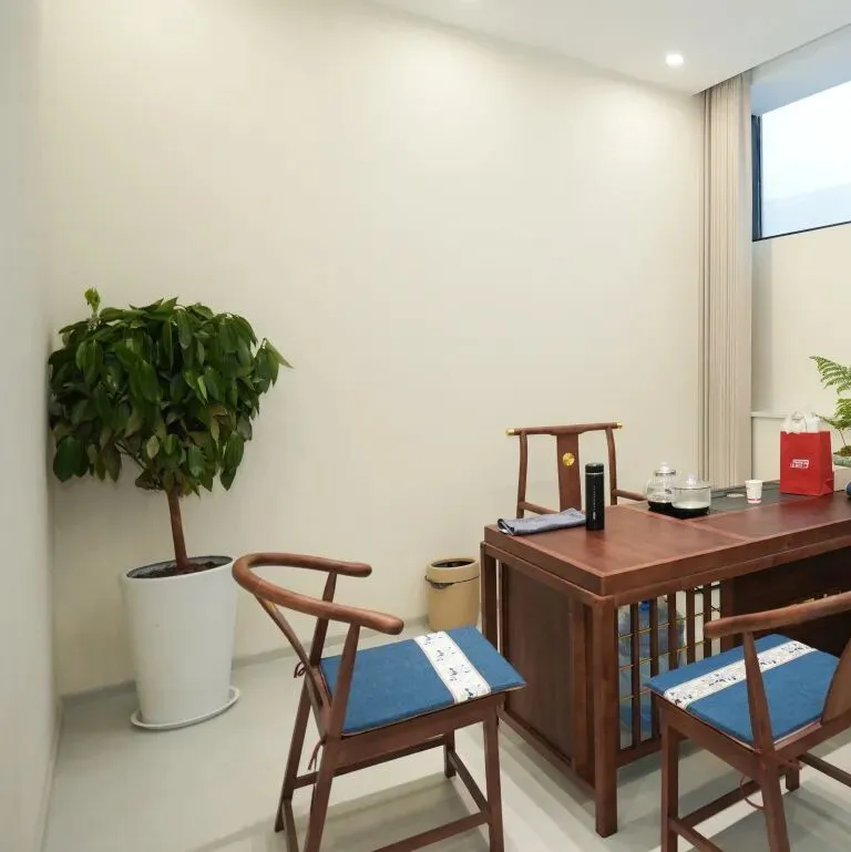诊疗区是诊所的核心,中投装饰以 “静谧、专业、私密” 为设计核心,打造了舒适的诊疗环境。米白色的功能沙发柔软舒适,可调节的设计满足了不同患者的需求,小圆几上的纸巾盒与绿植,细节处尽显贴心。