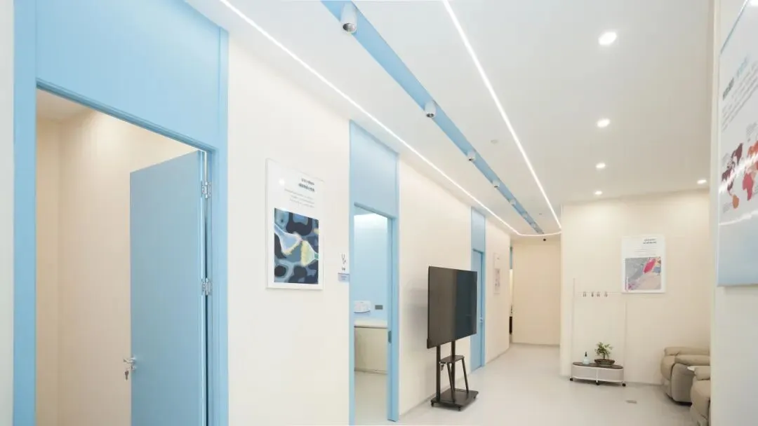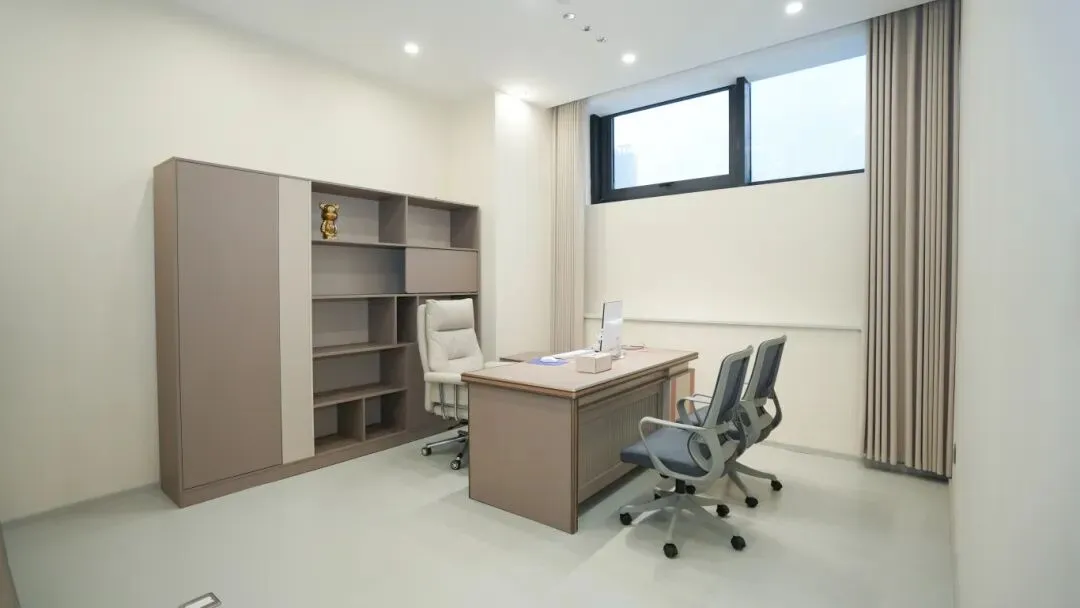 在动线设计上,中投装饰遵循 “高效、私密、舒适” 的原则,将空间划分为接待区、等候区、诊疗区、办公区等功能模块,以流畅的走廊串联起各个空间。走廊侧边,浅蓝色的门体与米白色墙面形成层次,线性灯带沿天花板蜿蜒,既起到了空间引导作用,又以光影提升了空间的纵深感,让每一次通行都成为舒适的体验。