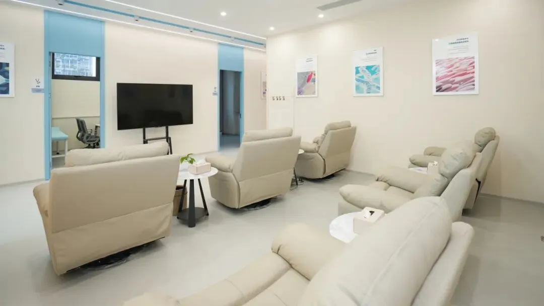 诊疗区以白色风琴帘进行空间分隔,既保证了每个诊疗位的私密性,又不影响空间的通透感。墙面的科普海报与柔和的灯光,让患者在诊疗过程中感受到安心与放松,真正实现了 “疗愈身心” 的空间价值。