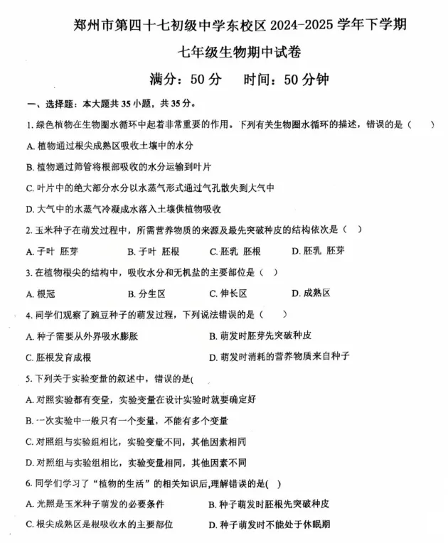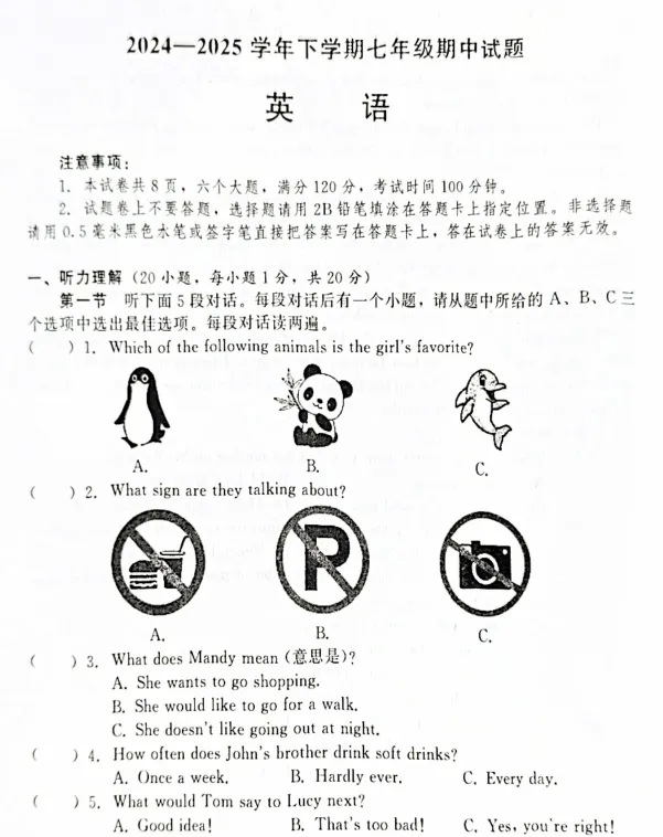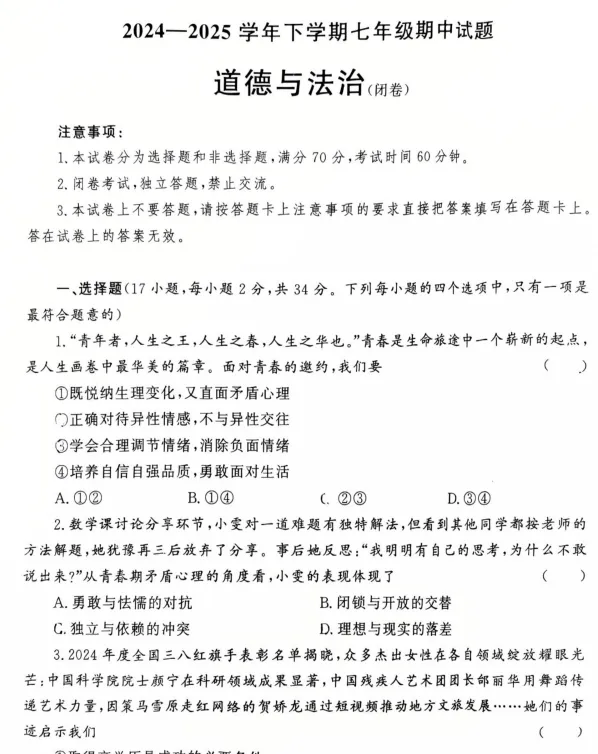 全部试卷及答案请关注初中好试卷后