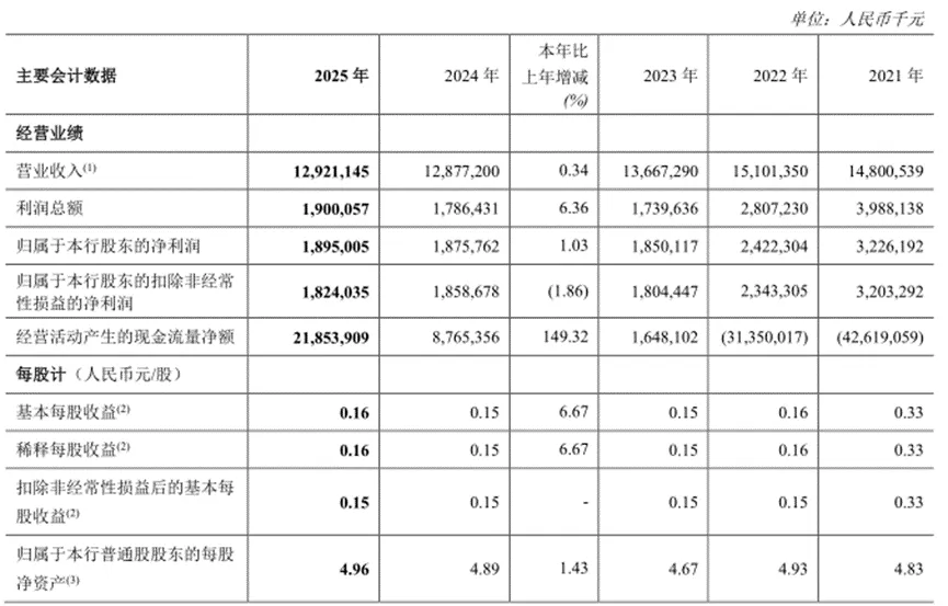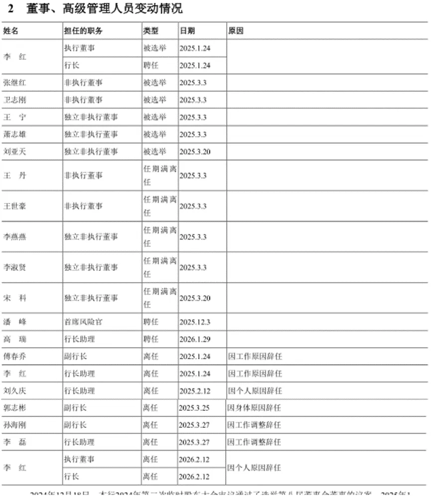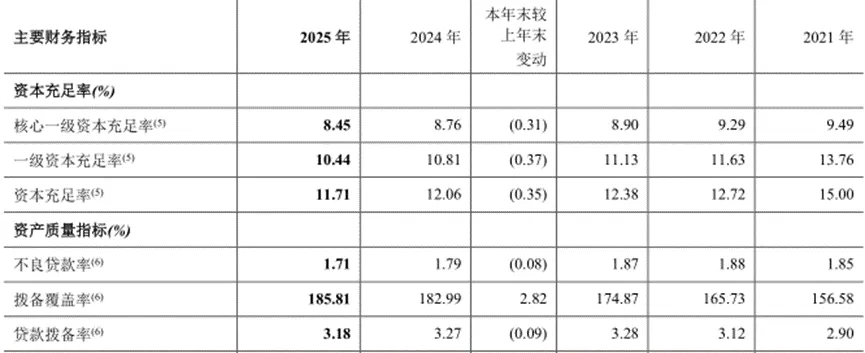 2025年,郑州银行营业收入和归母净利润分别为129.21亿元和18.95亿元,同比增幅分别为0.34%和1.03%;扣非净利润为18.24亿元,同比下降1.86%,主营业务盈利能力有所减弱。2023年和2024年,郑州银行的营业收入同比降幅分别为9.5%和5.78%,净利润同比增幅分别为-23.62%和1.39%。可以看出,郑州银行2025年的业绩是回暖的。作为全国首家“A+H”股上市城商行,郑州银行扎根本土,始终坚守“服务地方经济、服务中小企业、服务城乡居民”的初心,紧紧聚焦全省“1+2+4+N”目标任务体系,聚力做好金融“五篇大文章”,精准赋能区域高质量发展。近几年来,郑州银行资产规模稳步攀升。截至2025年末,郑州银行总资产达7436.74亿元,较上年末增长9.95%。2025年,郑州银行利息净收入108.64亿元,同比增长4.82%,占营业收入的比例为84.08%;非利息收入20.57亿元,同比下降18.13%,占营业收入比为15.92%,其中手续费及佣金净收入4.06亿元,较上年同期减少0.66亿元。2025年,郑州银行的净利差和净利息收益率分别为1.54%和1.61%,与上年同期相比均有所下滑。面对“息差收窄”的新常态,郑州银行盈利空间会遭到进一步挤压,抗风险能力可能会被削弱。不过,在郑州银行的经营业务中,财富管理业务表现亮眼。截至2025年末,郑州银行零售财富类金融资产规模572.52亿元,较上年末增长11.57%,代理类财富中收人民币5684.56万元,同比增幅86.11%。郑州银行受到关注的,还有其连续8年出现“前三季度盈利、第四季度亏损”的情形,这在城商行中并不多见。2025年1-4季度,郑州银行的营业收入分别为34.75亿元、32.15亿元、27.05亿元和35.26亿元,同比增幅分别为2.22%、7.4%、2.15%和-8.08%;归母净利润分别为10.16亿元、6.12亿元、6.52亿元和-3.84亿元,同比增幅分别为4.98%、-2.34%、0.22%、-4.26%。导致郑州银行这种情形出现的主要原因,是年末集中计提了信用减值损失。2025年,郑州银行计提信用减值损失72.82亿元,其中四季度计提29.23亿元,占比超四成。有业内人士分析称,通常来说,保持正常盈利能力的城商行,一般在前三季度就已经计提了充足的拨备,年末不需要搞“突击”。而郑州银行由于不良高企侵蚀利润,加之息差收窄和“资产荒”,导致营收弹性不足,没有足够的利润在平时进行“平滑”。截至2025年底,郑州银行有逾期贷款176.64亿元,较上年末下降9.59%;不良贷款余额70.29亿元,与上年同期相比增长了1.06亿元;不良贷款率1.71%,较上年末下降0.08个百分点。金融监管总局数据显示,2025年末,商业银行不良贷款率为1.50%。目前已经披露年报的3家A股城商行,重庆银行和青岛银行同期不良贷款率分别为1.14%和0.97%。从2025年三季报的情况来看,在17家A股城商行中,郑州银行的不良贷款率位列第二高。资本充足水平方面,截至2025年底,郑州银行的核心一级资本充足率、一级资本充足率和资本充足率分别为8.45%、10.44%和11.71%,与上年同期相比均有所下滑,风险缓冲空间进一步缩小。2025年8月,央行河南省分行公布罚单显示,郑州银行因违反信用信息采集、提供、查询及相关管理规定,被罚款61.9万元;2026年1月,郑州银行因办理经常项目资金收付未合理审查交易单证真实性,被国家外汇管理局河南省分局罚没100.59万元。年报显示,2025年以来,郑州银行董事、高级管理人员变动20次,其中12名董高离任,原因包括任期满离任、因工作调整辞任、个人原因辞任等,覆盖业务、风控、运营等关键条线。2026年2月,正式履职行长仅一年多的李红因个人原因辞去执行董事、行长等职务,成为郑州银行近年来任期最短的行长之一。目前,郑州银行核心管理团队仅剩5人,副行长、行长等多个关键岗位至今空缺,新聘任的副行长王森涛任职资格还在等待监管核准。管理层的动荡给郑州银行省了不少董高费用。2025年,该行董事、高级管理人员报酬为761.6万元,而2024年的这一数据为1559.6万元。与此同时,郑州银行股权结构问题也受到关注,包括河南盛润控股集团有限公司、豫泰国际(河南)房地产开发有限公司等在内的多家股东成为失信被执行人。郑州银行2025年董事、高级管理人员变动情况