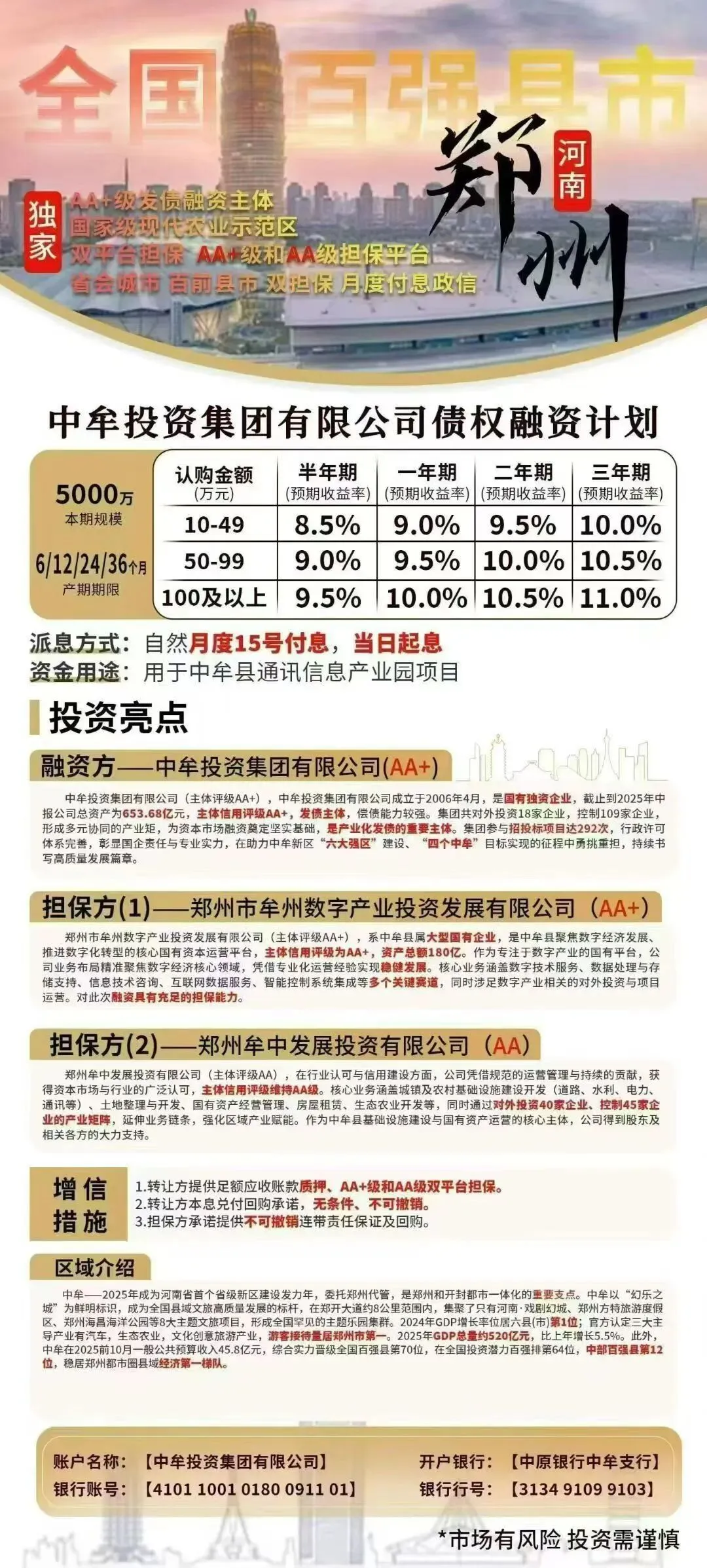 💰资金用途: 用于中牟县通讯信息产业园项目