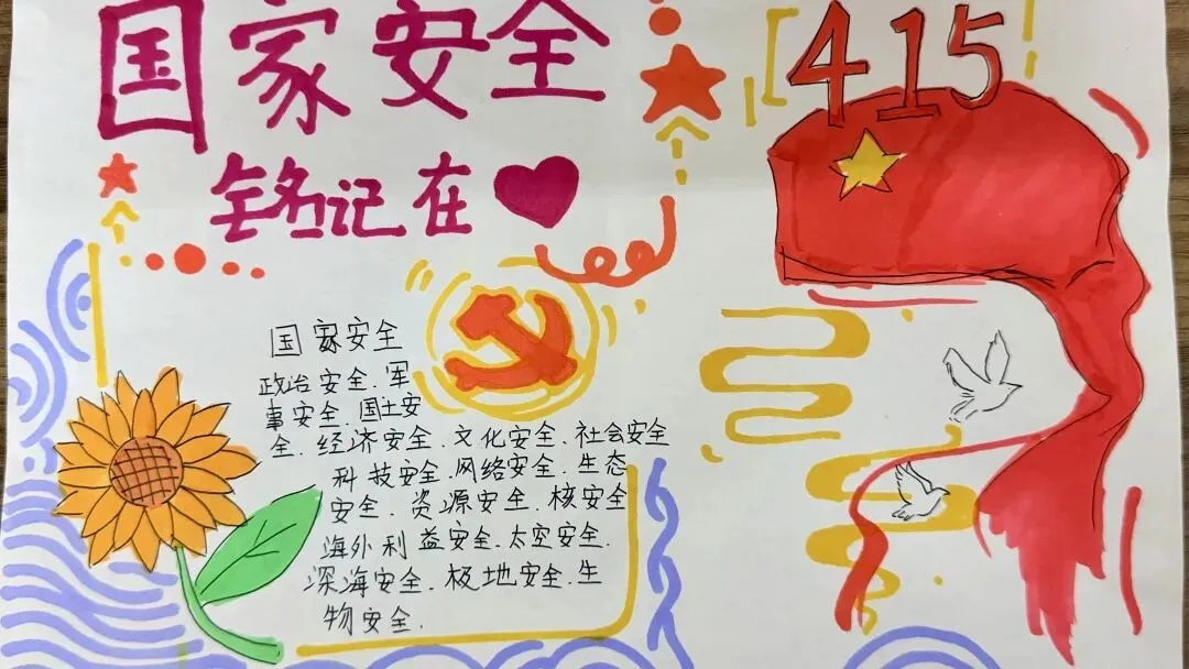活动中,同学们聚焦粮食安全、网络安全、生态安全、文化安全等与日常生活密切相关的领域,精心选取素材,认真构思版面。有的同学以“节约粮食”为线索,展现粮食安全对国家安全的基础性作用;有的同学围绕国家安全知识展开描绘;还有同学通过丰富的图画展示维护国家安全的重要性。