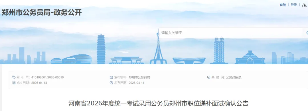 按照《河南省2026年度统一考试录用公务员公告》,根据面试确认情况,现将郑州市递补面试确认有关事项公告如下。