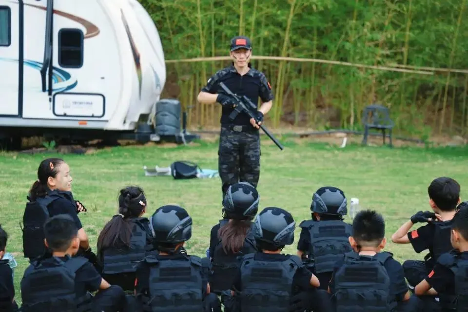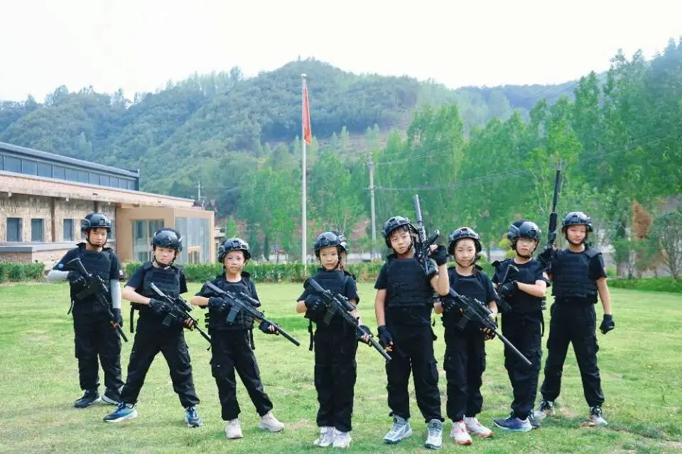 硬核军事体验:真人 CS 热血对抗、高空楼降挑战、军事队列训练、团队拓展闯关,锻炼孩子胆量、毅力与团队协作能力;