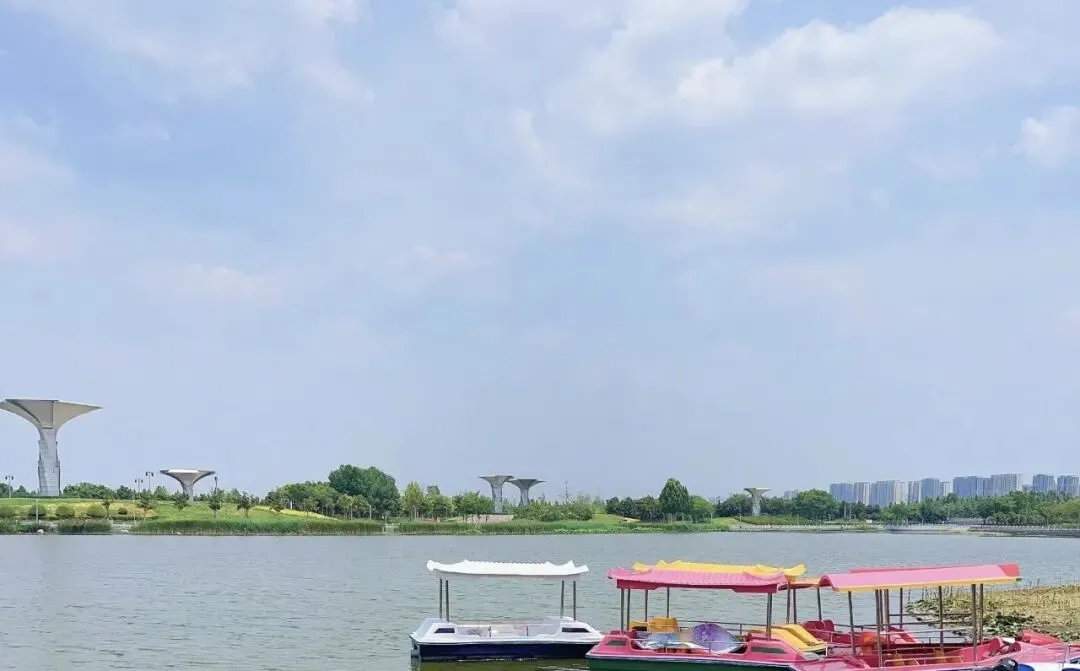 整个园区很大,要走1个小时过浮桥才能走到湖对岸地标建筑,带小朋友的话建议推小推车路程较远