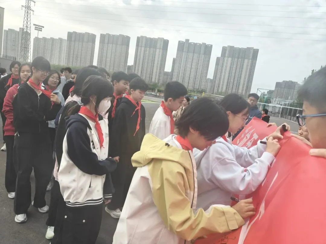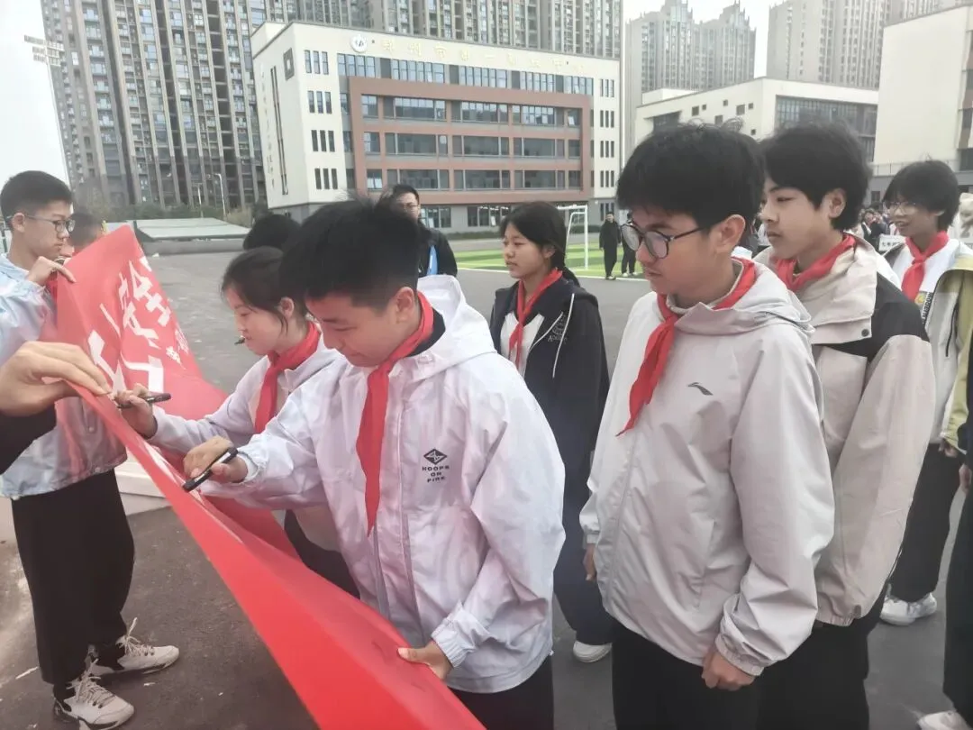 在升旗仪式结束后,学校专门组织全校师生在安全日主题横幅上郑重签名,一笔一画写下的不仅是名字,更是对生命的敬畏、对规则的坚守。学校还统一印发有关安全的致家长一封信,向家长普及相关法律法规和安全知识。