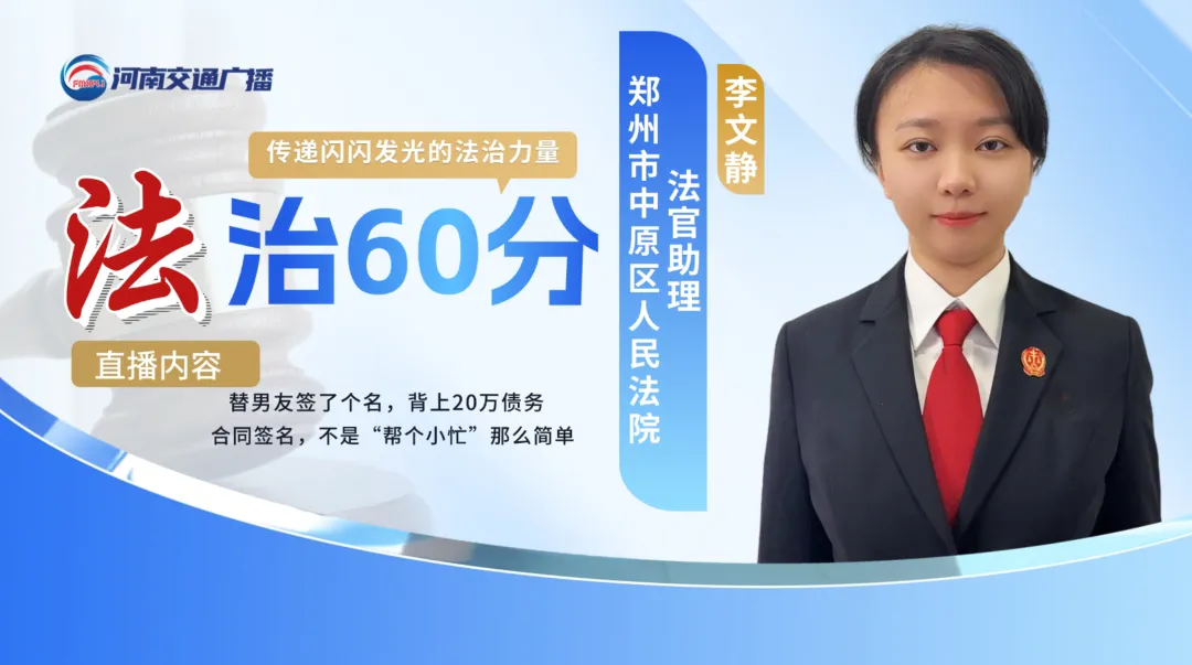 近日,《法治60分》节目组邀请郑州市中原区人民法院法官助理李文静做客直播间,为您揭开“签名”背后的法律大坑。