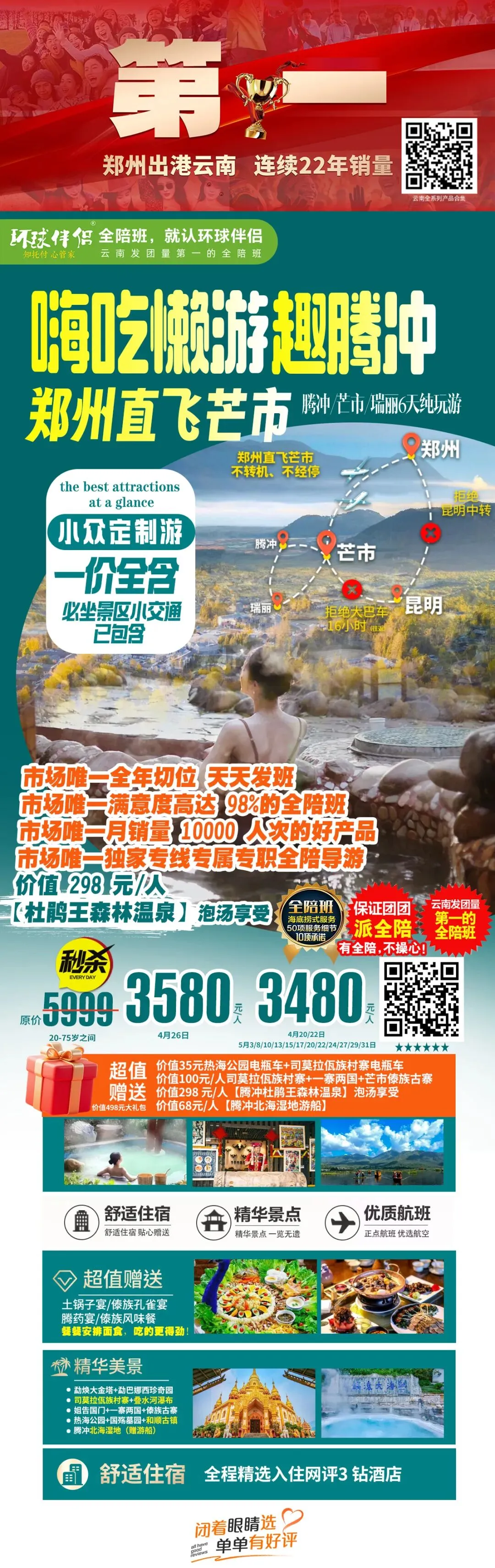 郑州直飞芒市纯玩腾冲全陪班·班班保证上全陪