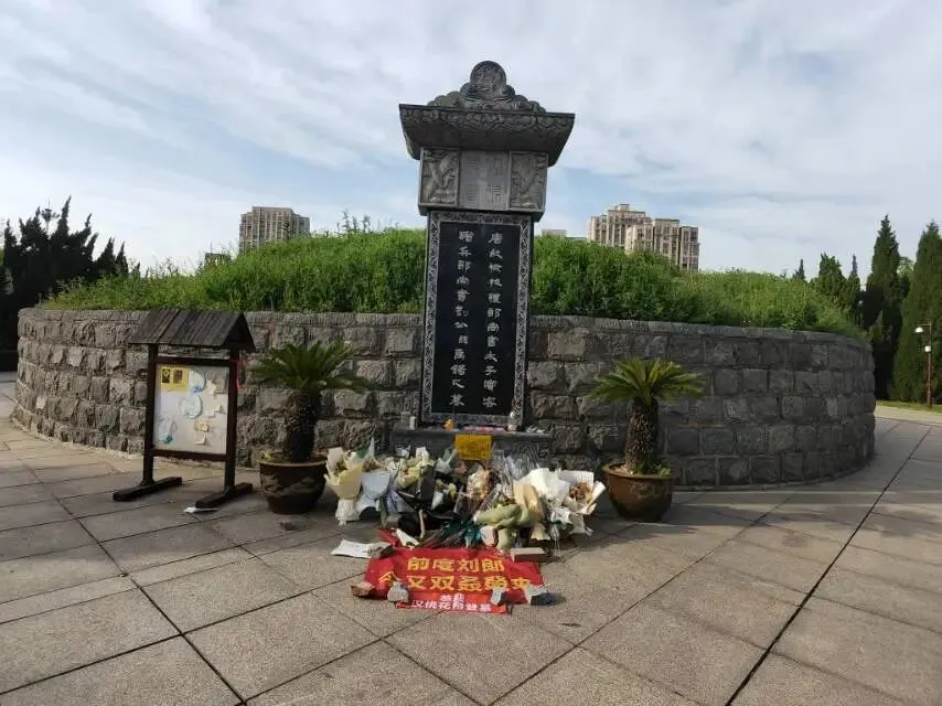 将目光投向这片承载着千年文化的土地,公园的美景映入眼帘。绿树成荫的步道连接着古今,朱红灰砖的古建筑群在阳光下显得格外庄重。人们或漫步湖畔,或驻足碑前,这份安静的陪伴,正是对刘禹锡最温柔的致敬。 他的墓碑前,一束束鲜花、一张张留言便签,是今人跨越千年的思念与敬意。横幅上“前度刘郎今又来”的大字,彰显着后人对这位屡遭贬谪却始终昂扬的诗人最高崇敬。泛黄的信纸上,有人抄录他的千古名句,有人写下对他人生的感悟,有人倾诉自己的心事,字里行间满是对这位诗豪的崇敬与追慕。千年前的文人,在今天依然拥有无数“粉丝”,这份跨越时空的共鸣,深深的感动着祭拜的人们。