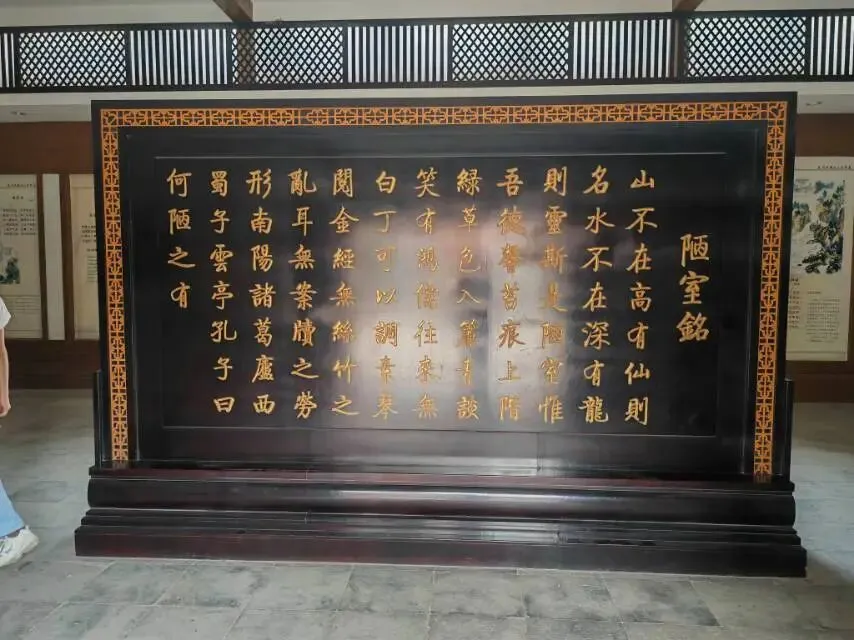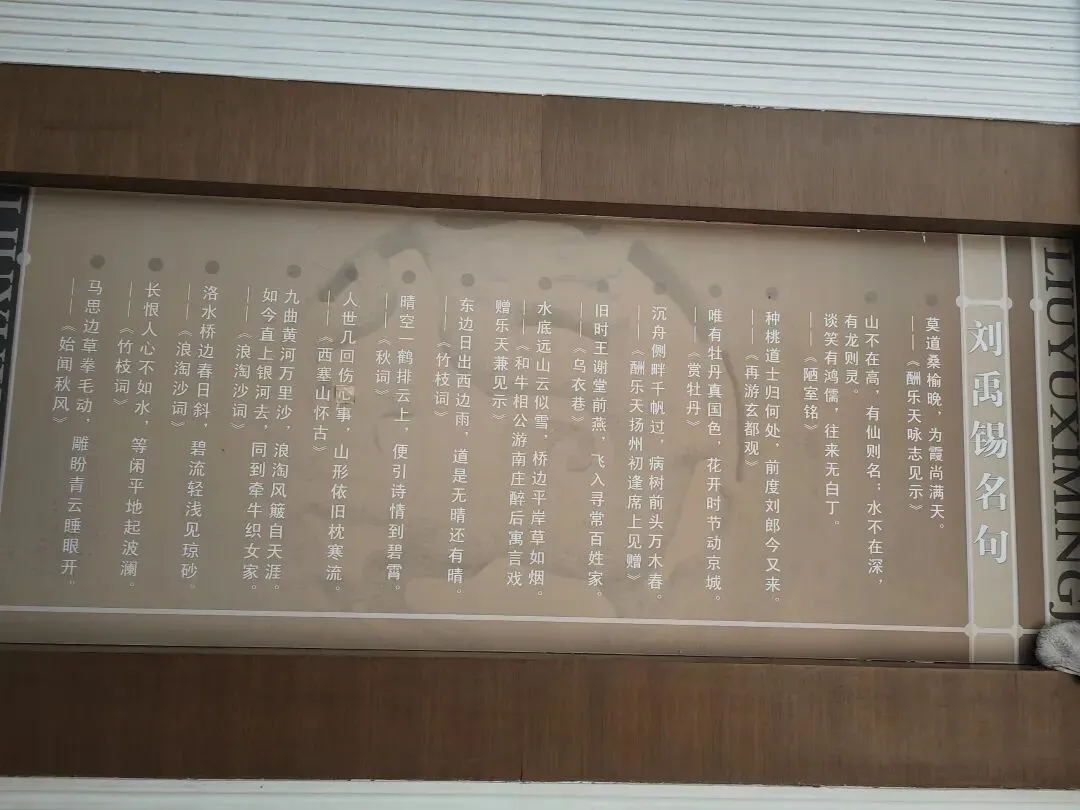 刘禹锡文化纪念馆是公园的灵魂所在。朱红灰砖的门庭古朴庄重,推门而入,刘禹锡的半身雕像静静伫立,“陋室乾坤”四字匾额高悬,无声诉说着他“斯是陋室,惟吾德馨”的高洁志趣。馆内,《陋室铭》的金字碑刻熠熠生辉,每一个字都镌刻着他安贫乐道、不屈不挠的人生态度。