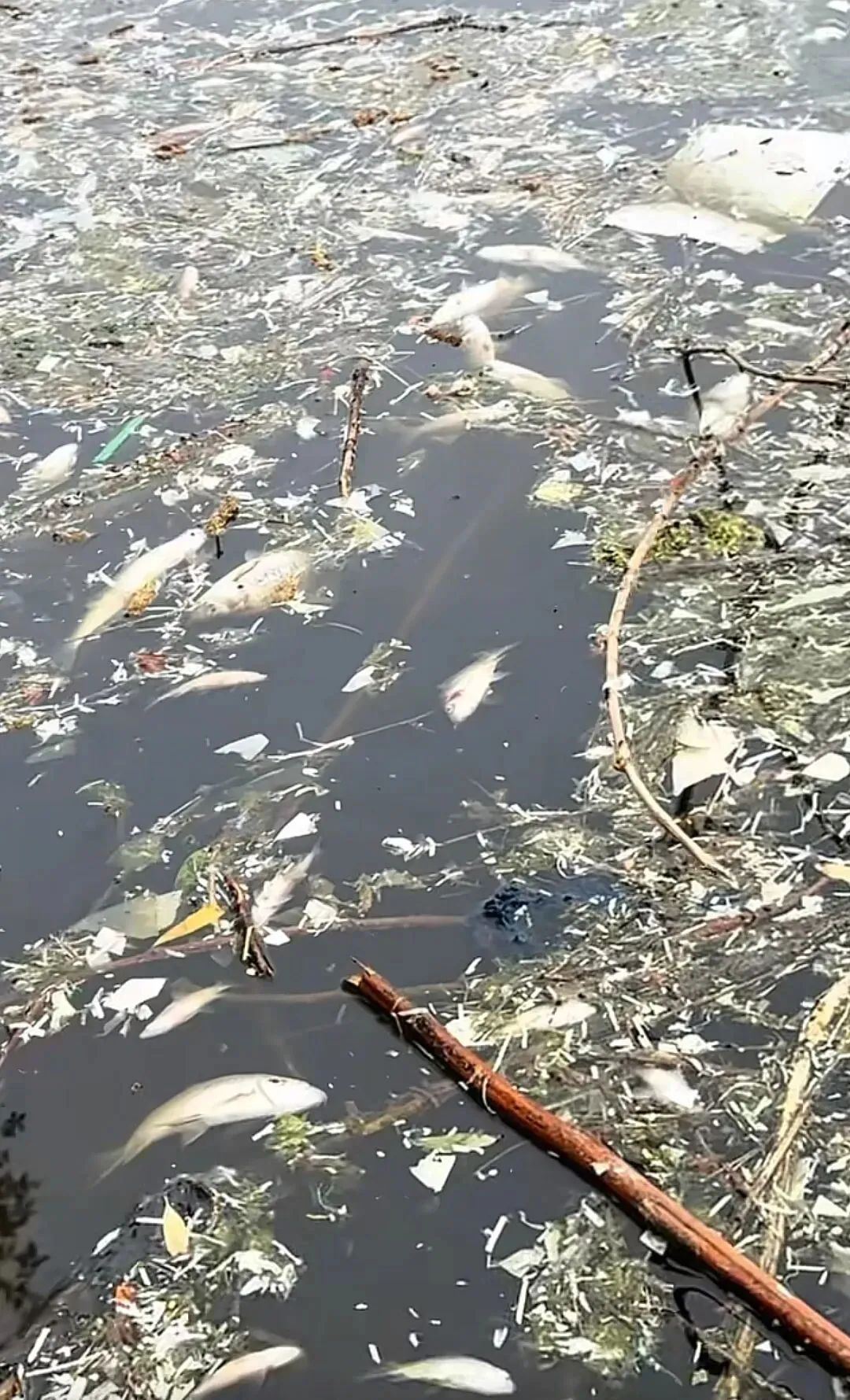 网传视频内容显示,一处水域的水面上漂浮着死鱼,以及枯树枝、烂树叶,以及一些生活垃圾,岸边也有死鱼。该网友发文称,13日,他在新郑市郭店镇冯寺村游玩时,发现有死鱼的情况,且现场环境较差,但他不清楚具体原因。另有网友称,该水库以前清澈见底,不知道现在为何会变成这样。