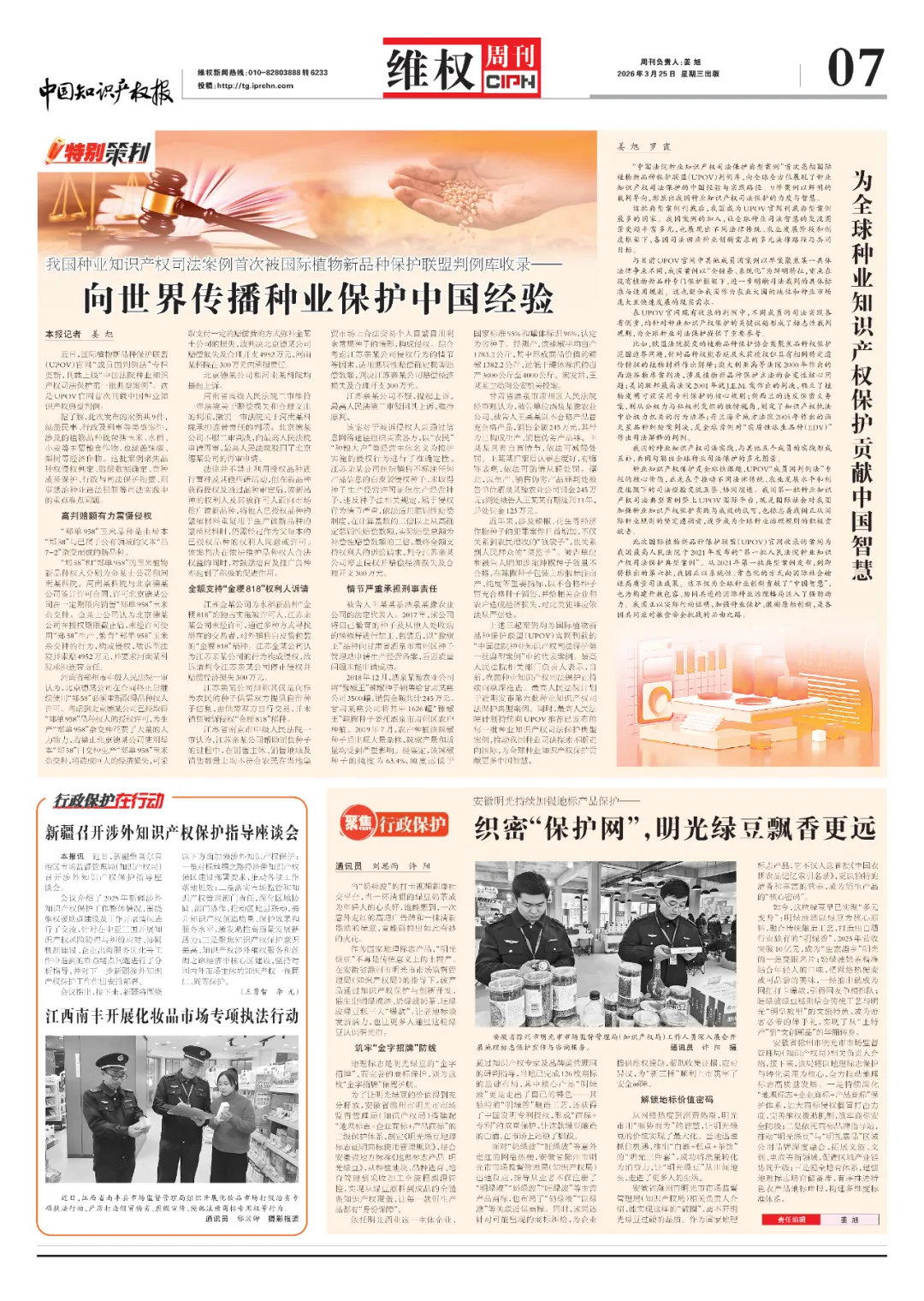 上述三起案例均为国际植物新品种保护联盟(UPOV)官网刊载的“中国法院种业知识产权司法保护第一批典型案例”中的代表案例。最高人民法院相关部门负责人表示,当前,我国种业知识产权司法保护正持续向纵深推进。最高人民法院计划于近期发布第六批种业知识产权司法保护典型案例。同时,最高人民法院计划持续向 UPOV推荐已发布的每一批种业知识产权司法保护典型案例,推动我国种业司法探索不断走向国际,为全球种业知识产权保护贡献更多中国智慧。