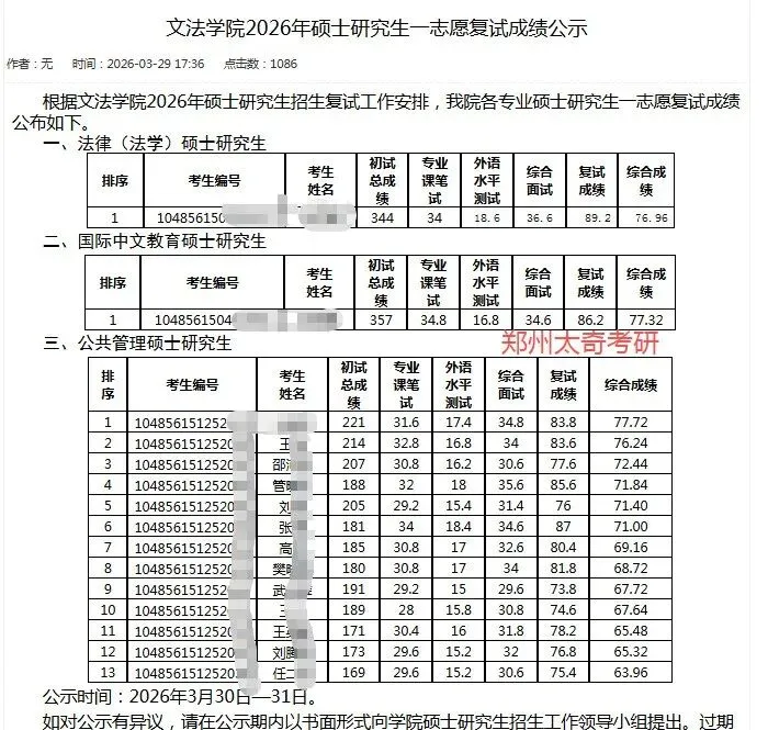 郑州航院26考研复试线: