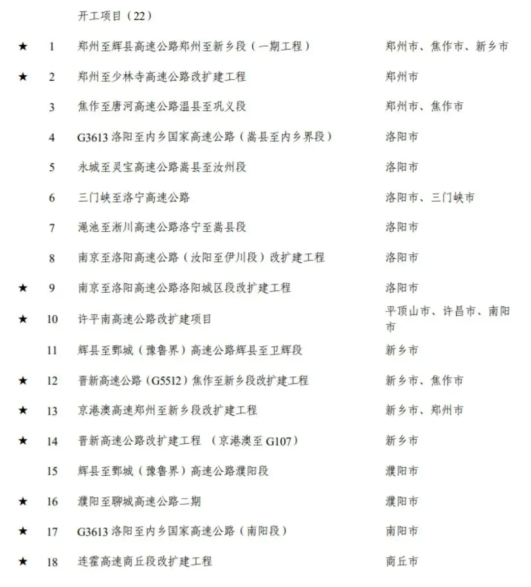 近日,河南省发展和改革委员会印发了2026年河南省重点建设项目名单,其中,高速公路项目有32个,今年开工项目22个。其中高速公路改扩建项目占到9个,且多为今年新纳入的项目。具体名单如下: