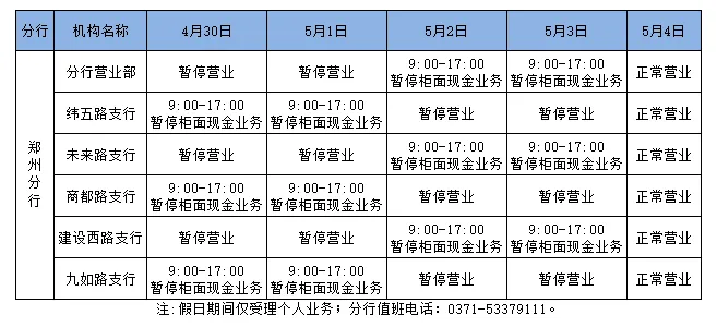 为确保2022年“五一劳动节"假期期间我行网点工作有序开展,为您提供优质高效的金融服务,现将我行辖内各网点对外营业时间公告如下: