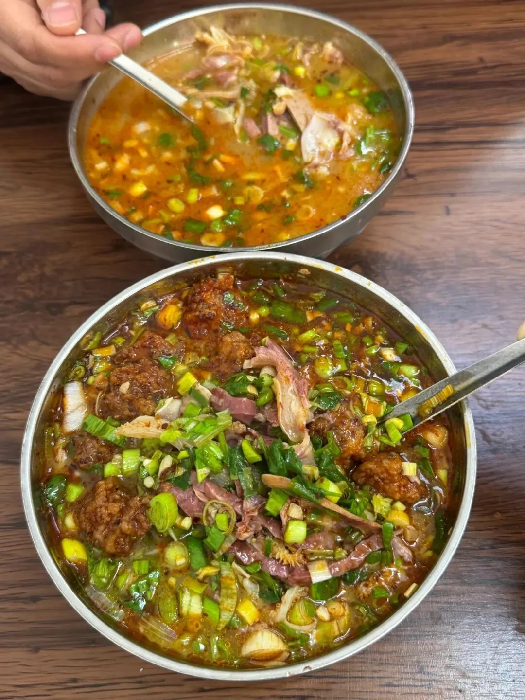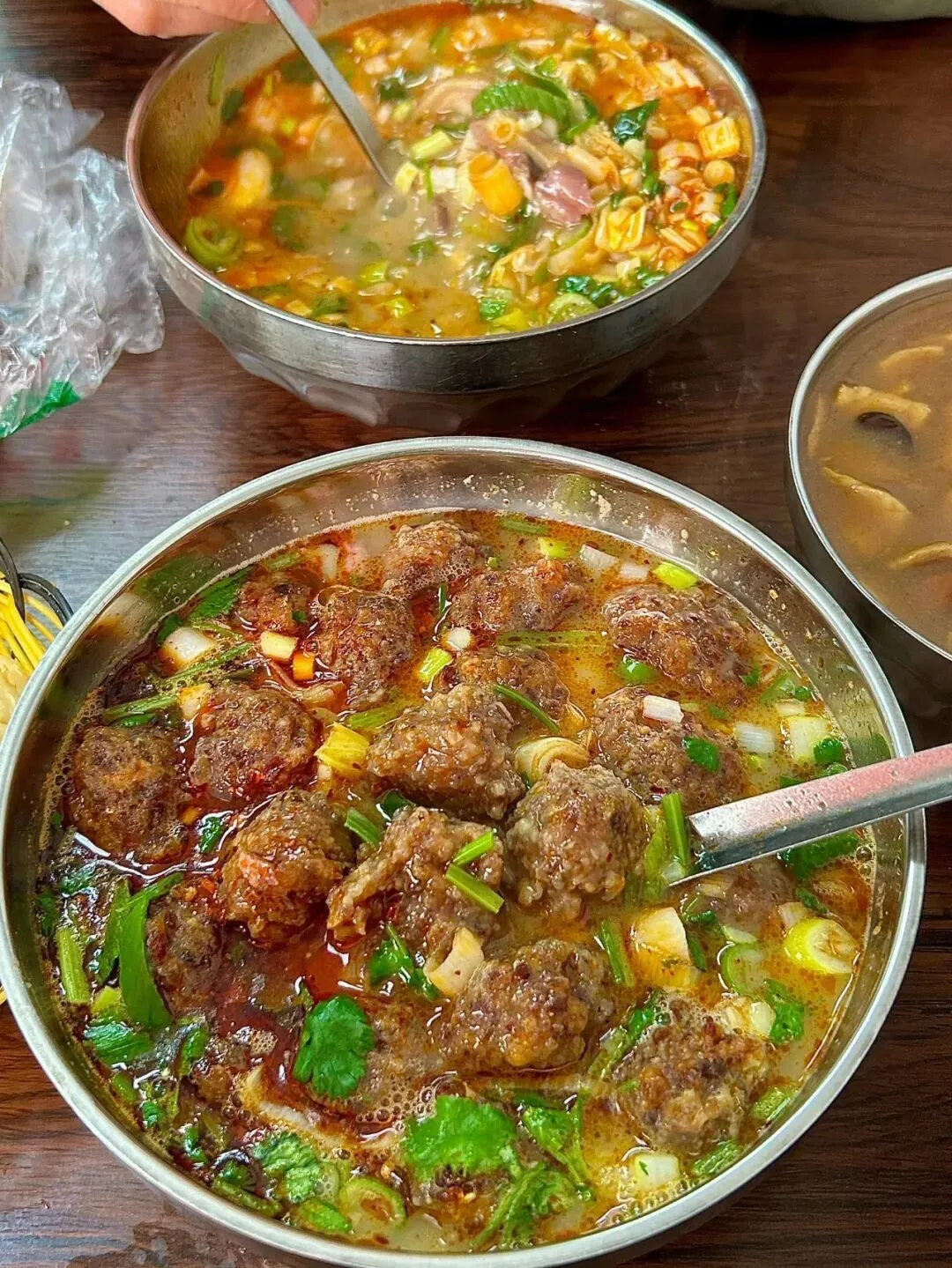 它这儿羊杂汤羊肉汤丸子汤,想怎么掺就怎么掺,随便组合都好吃