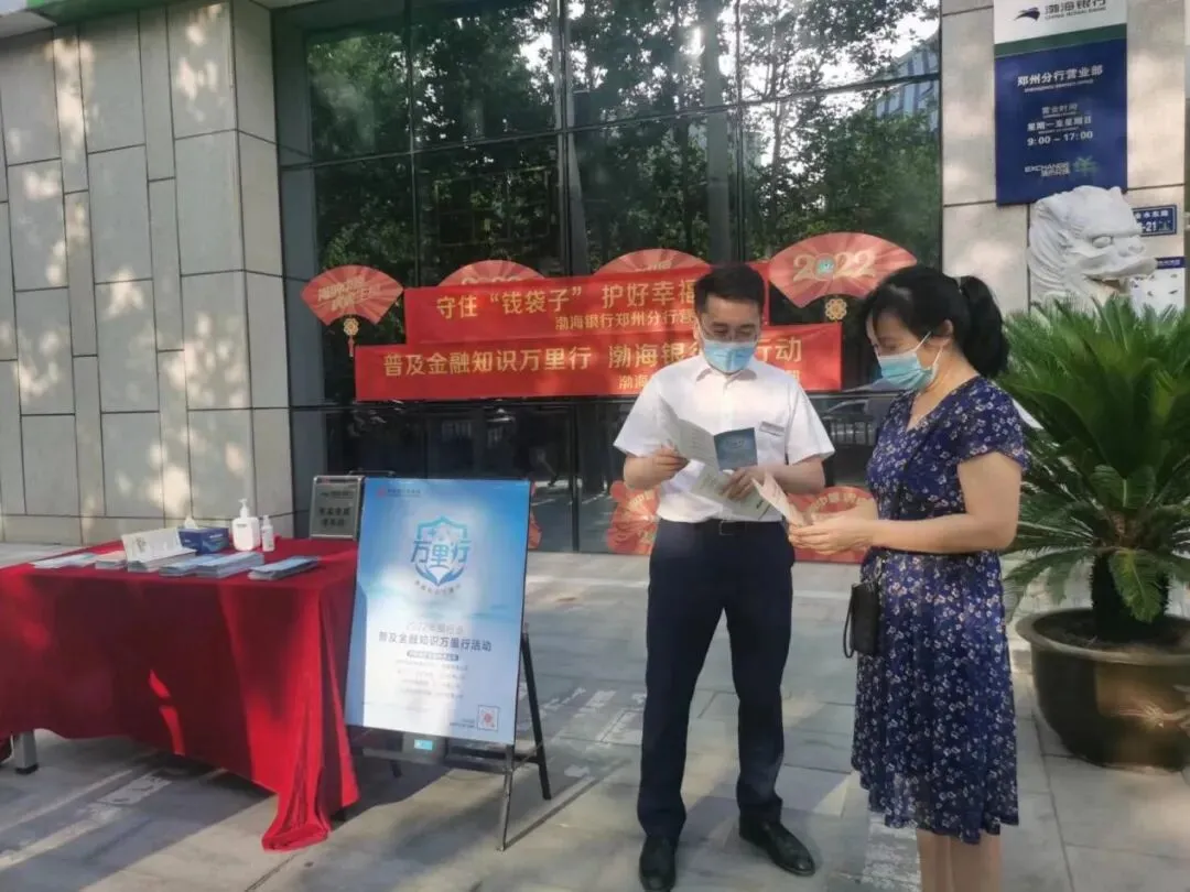 为持续推动金融知识普及和消费者教育工作,根据中国银行业协会《关于印发<2022年银行业普及金融知识万里行活动方案>的通知》要求,渤海银行郑州分行积极响应,迅速落实,积极开展各类宣传教育活动,履行消费者权益保护主体责任,增强金融消费者的融入感和获得感。