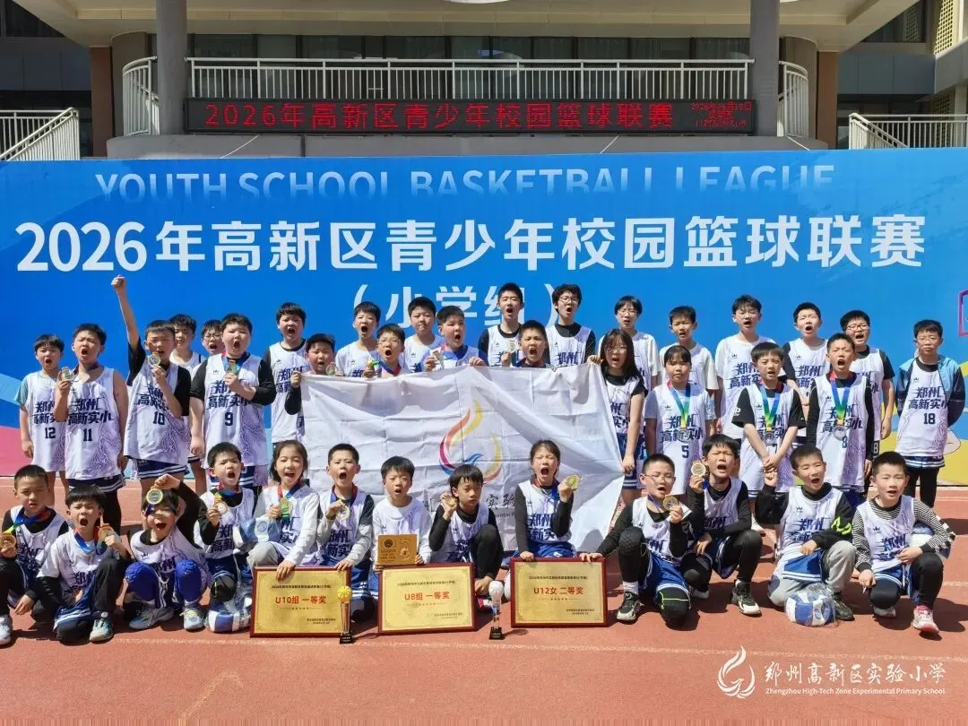 一场比赛,四座奖杯。 在4月7日至14日举行的郑州高新区青少年校园篮球联赛(小学组)中,郑州高新区实验小学篮球队成为全场瞩目的焦点——U8组强势夺冠、U10组斩获亚军、U12男子组与女子组双双拿下二等奖,实现全组别全面开花、捷报频传。