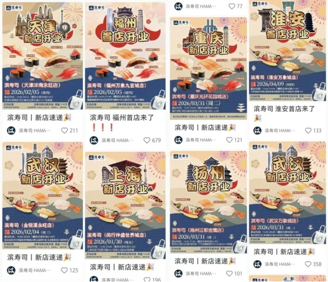 截至2026年3月,滨寿司在中国内地及香港的门店数量已突破100家,且2026年仍有持续扩张的计划,发展势头十分迅猛。