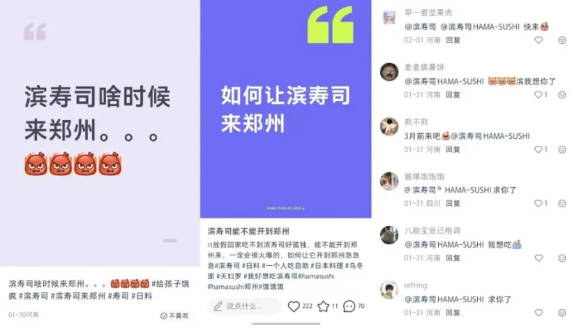 滨寿司官号随即在评论区互动回应“我真的有在努力”,标志着这家在日本及海外拥有超550家门店的寿司连锁巨头正式进军河南市场。