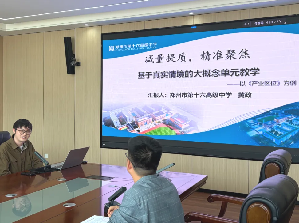 活动伊始,郑州市第十六高级中学的黄政老师进行经验分享《减量提质 精准聚焦——以<产业区位>为例》。黄老师紧扣“产业区位”这一核心大概念,以学生熟悉的蜜雪冰城为情境,巧妙串联农业、工业、服务业三大区位,展现出扎实的专业功底,有效落实“减量提质”要求。