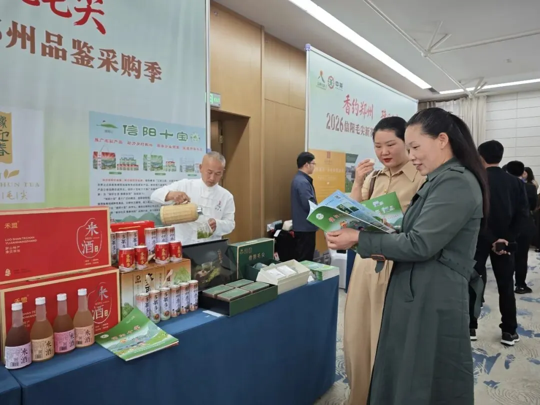 值得一提的是,信阳市人民政府驻郑州办事处已连续三年成功举办此类活动。有效打通了信阳毛尖直达郑州市场的渠道,并落地2家信阳毛尖郑州营销中心。在本次活动推介环节,信阳市茶产业主管部门负责人详细介绍了信阳毛尖的产业规模、品牌价值及“十四五”以来茶文旅融合的成效。据悉,截至目前,信阳市茶园总面积达216万亩,年干茶产量9.5万吨,农业总产值170亿元,茶产业已成为带动山区群众增收的支柱产业。中国茶叶股份有限公司负责人在发言中表示,将依托渠道优势与品牌资源,助力信阳毛尖拓展全国高端市场。活动现场还举行了产销对接签约仪式,多家郑州本地采购商与信阳茶企签订了新茶采购协议。同时,“信阳十宝”企业与郑州部分商超、电商平台达成合作,推动信阳毛尖、板栗汁、鹅块、米酒等特色产品进入中原市场。