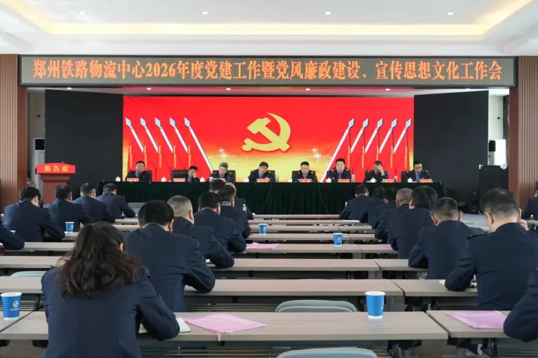 4月14日,郑州铁路物流中心在中心四楼会议室召开2026年度党建工作暨党风廉政建设、宣传思想文化工作会议,中心领导班子成员、各部门负责人及营业部党政正职参加了本次会议。