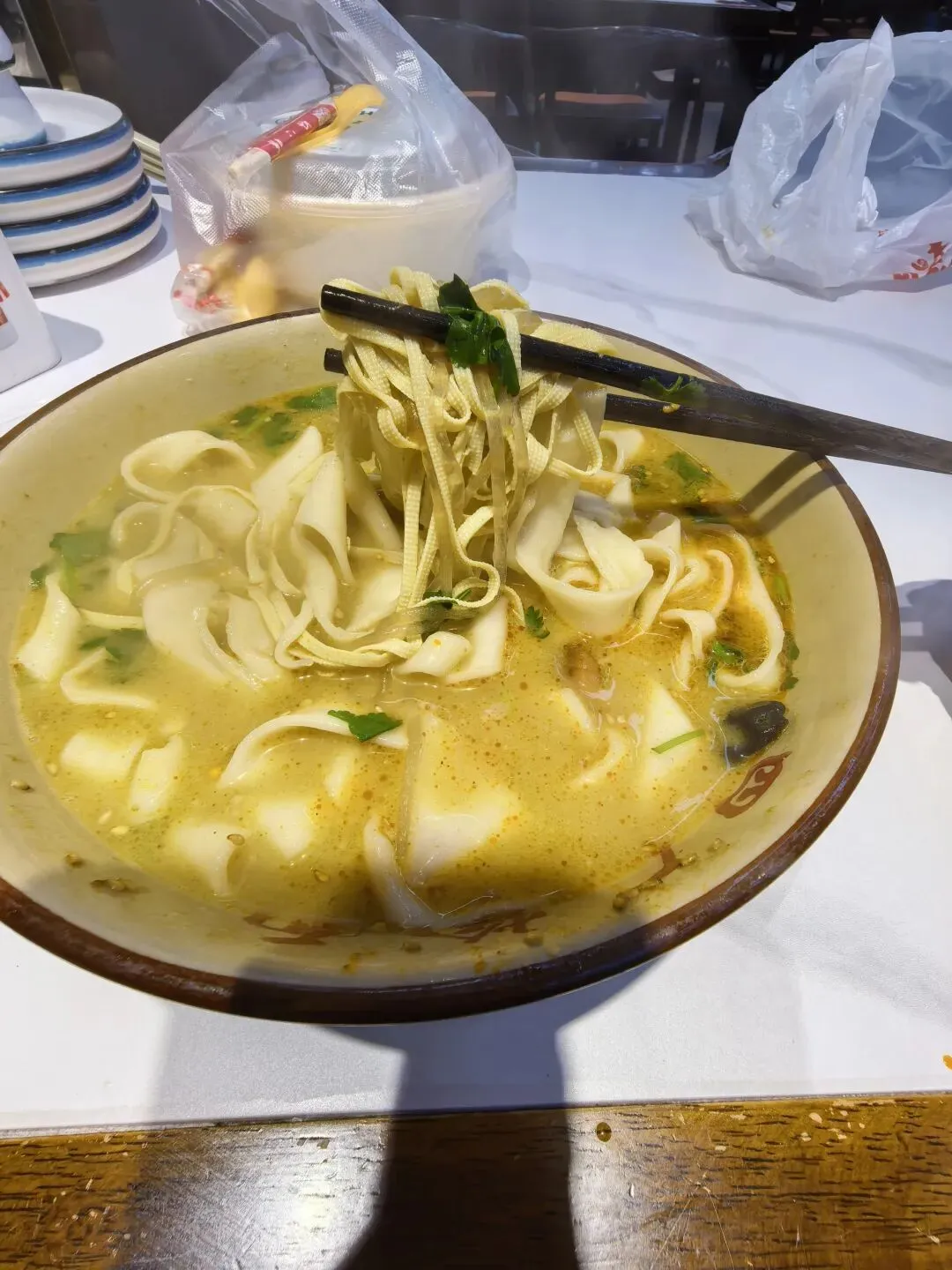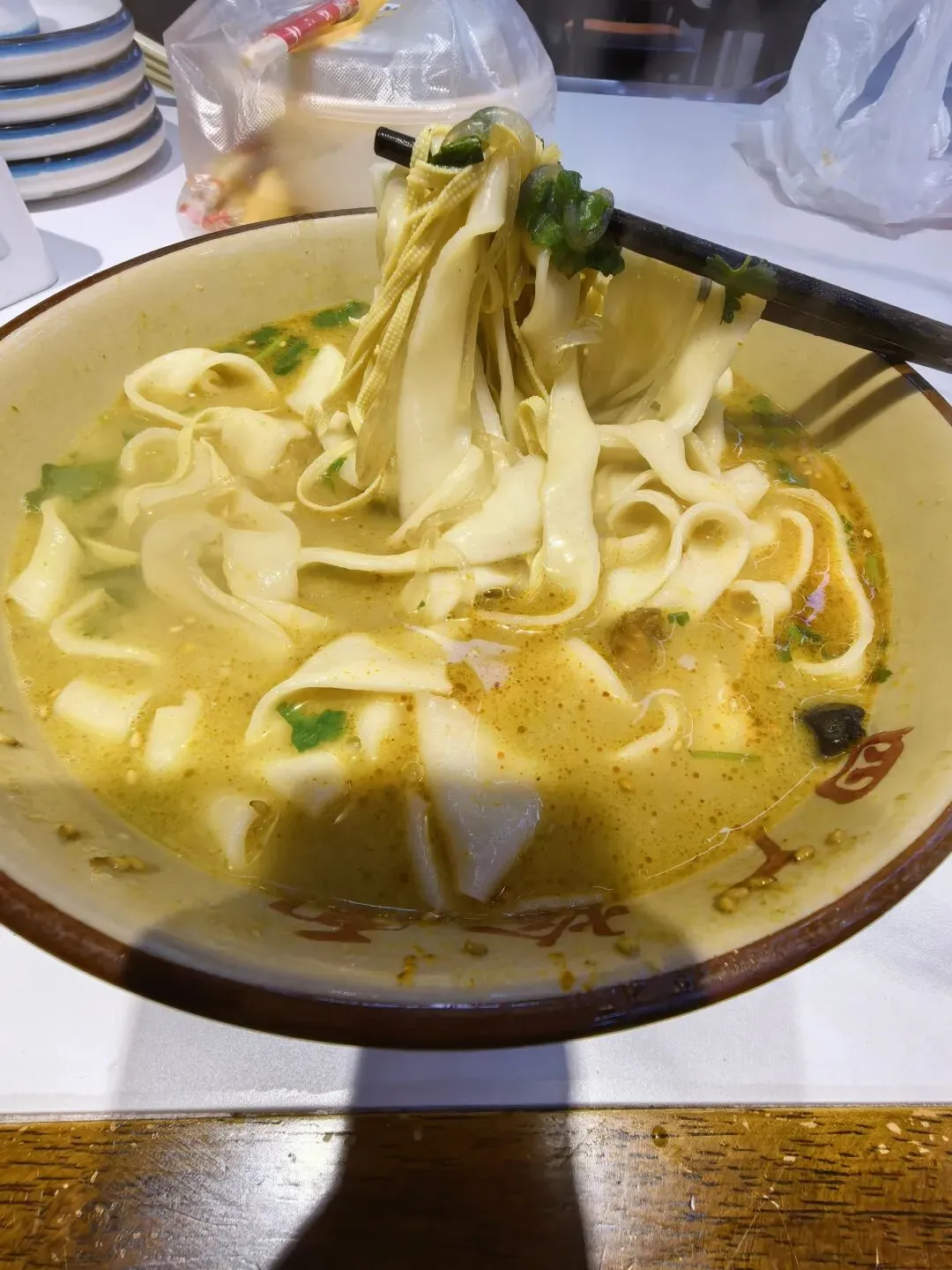 烩面吃过羊汤,红汤,咖喱的,最喜欢吃的是咖喱烩面。