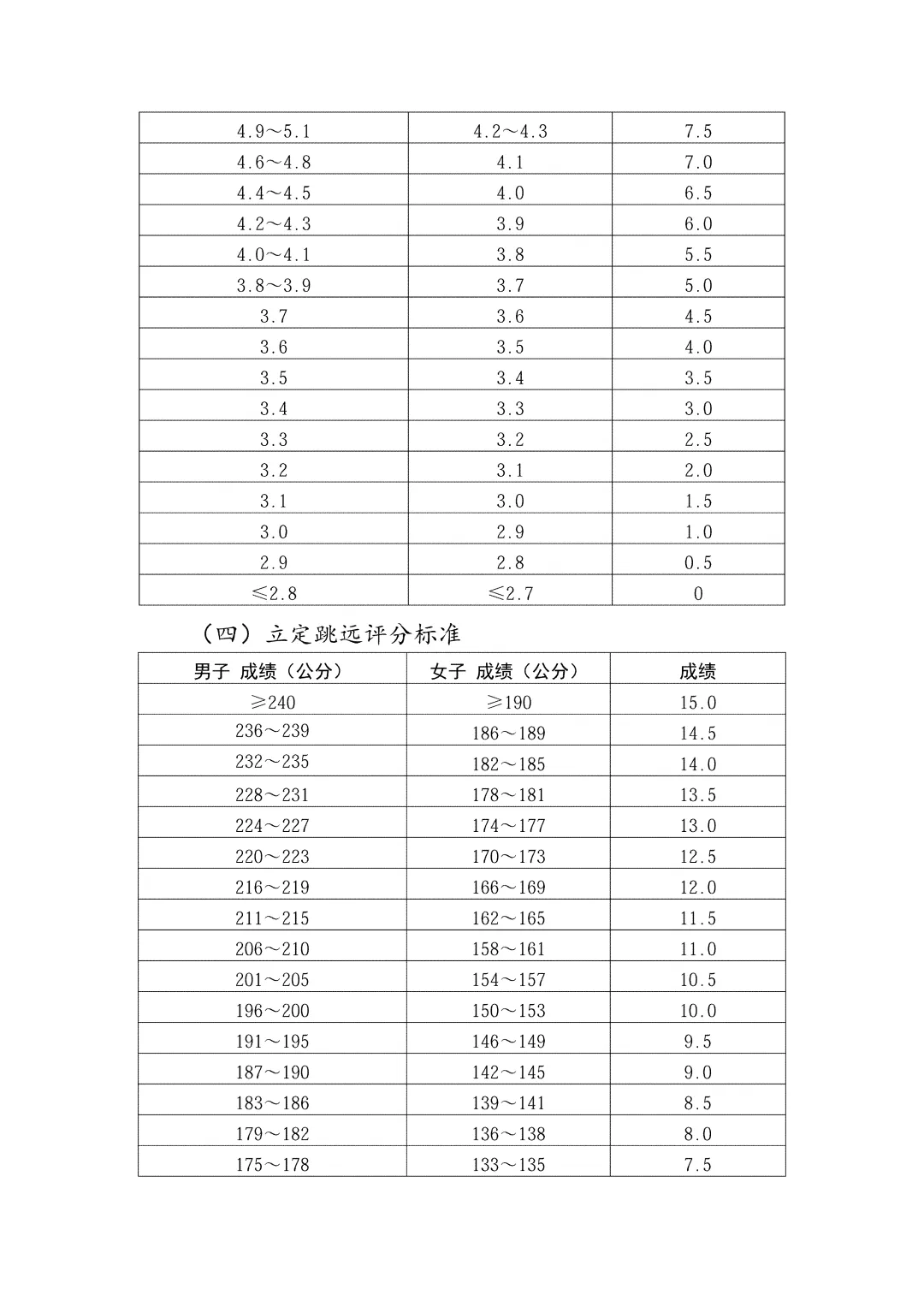 其中,必考项目为长跑(男子1000米、女子800米),分值为25分。选考项目中,考生从素质类项目中选考2项,每项分值为15分;从运动健康技能类项目中选考1项,分值为15分。