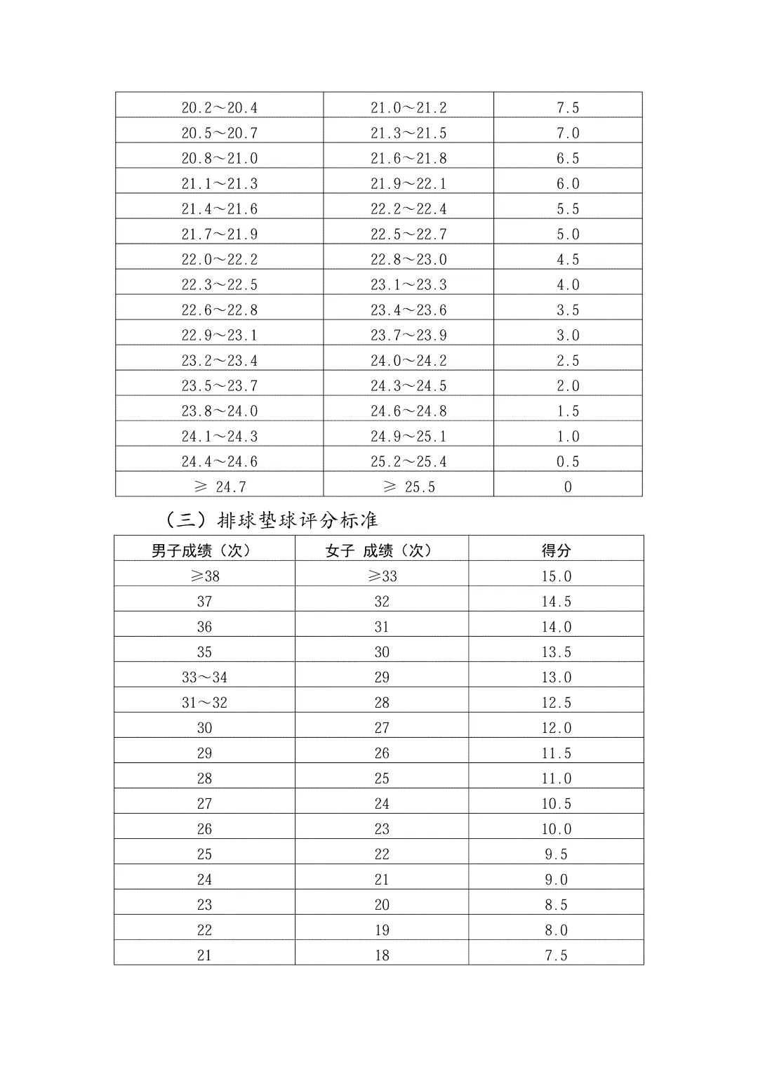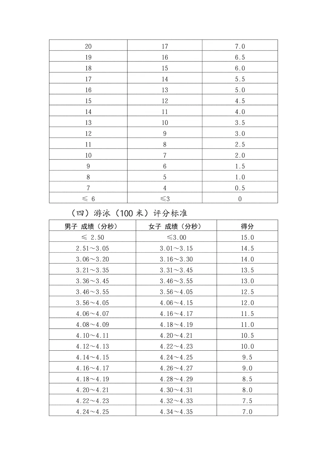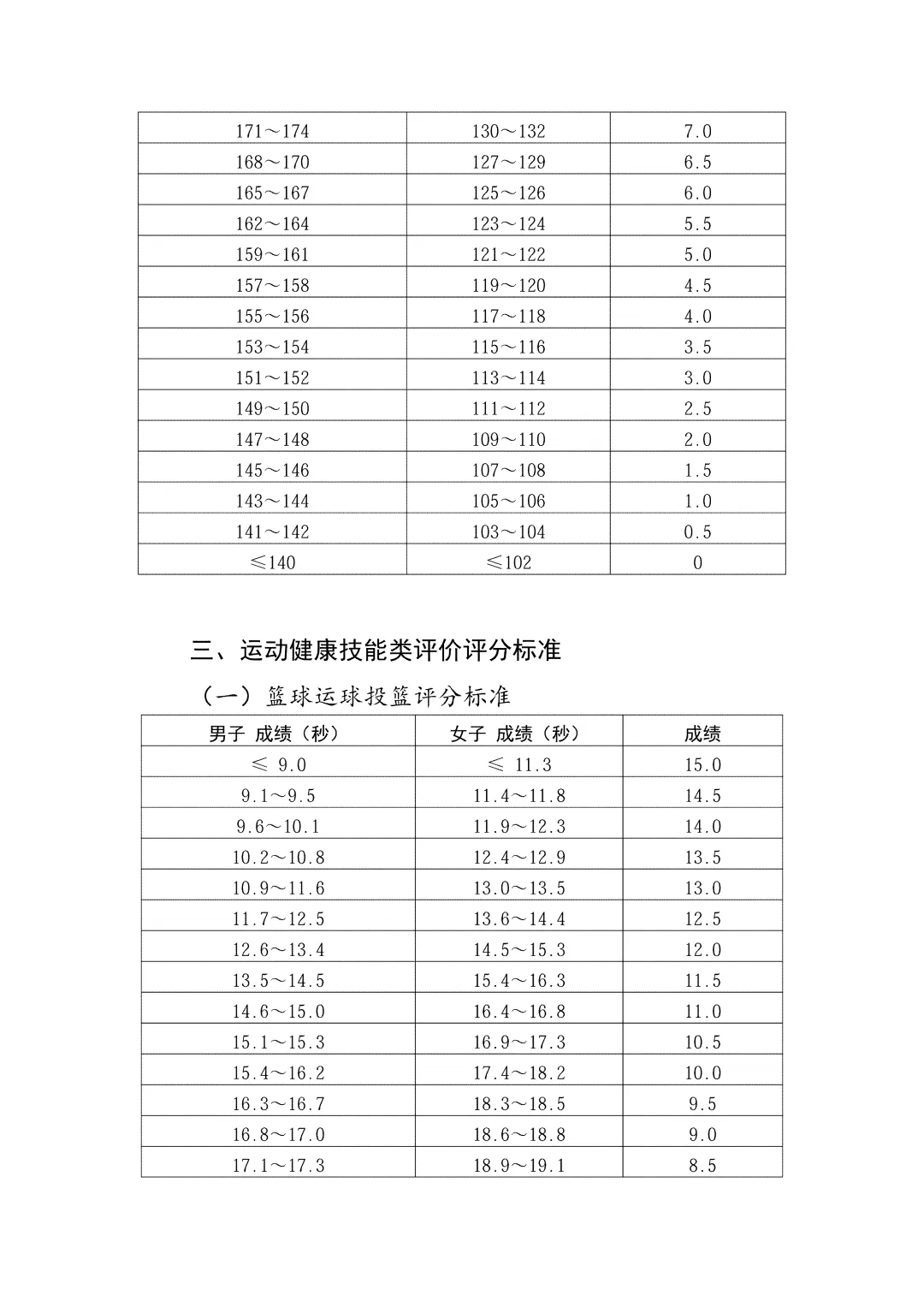 • 运动健康技能类为篮球运球投篮、足球运球射门、排球垫球、游泳(男女均为100米,泳姿不限)、心肺复苏实践操作。