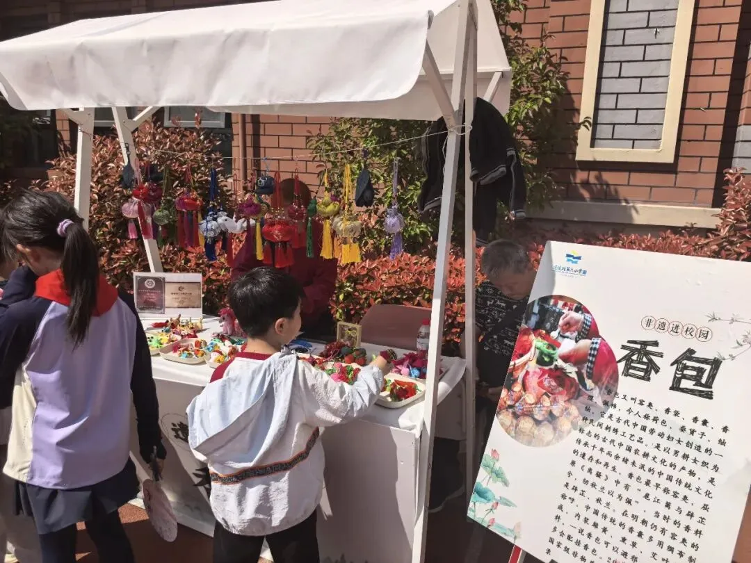 本次市集精心引入糖画、香包、面塑、剪纸、草编、泥塑、书法、漆扇、锤草印花、中草药十项非遗特色项目。糖画台前,糖浆如金带飞舞,片刻勾勒出栩栩如生的形象;香包制作区,艾草清香与五彩丝线交织,满是吉祥安康的味道;面塑摊位前,孙悟空、小熊猫活灵活现;剪纸角落,红纸翻飞间,精美艺术品跃然纸上。草编、泥塑、漆扇、书法、锤草印花、中草药等摊位前,孩子们在一锤一剪、一笔一画、一揉一编、一配一制中,触摸到了传统文化的温度。