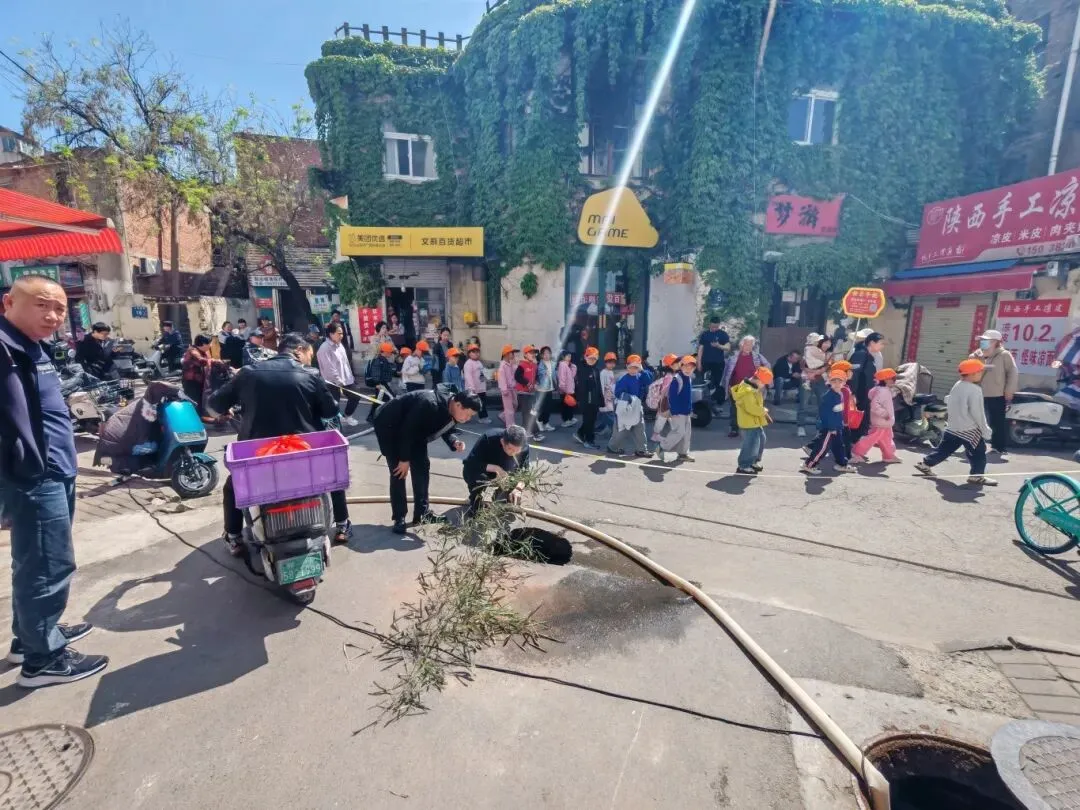 确权就是开工令。水务集团迅速调集人员和机械进场施工,全力推进管道修复与道路恢复。抢修现场,工人忙碌,机器轰鸣,一片热火朝天。应急处置人员在现场持续跟进,协调解决施工中出现的各种问题,确保修复工作加速推进,保障周边小学、幼儿园学生上下学出行安全。最终在4月13日,路面完成修复,交通恢复正常。
