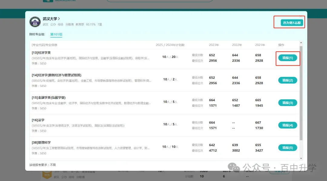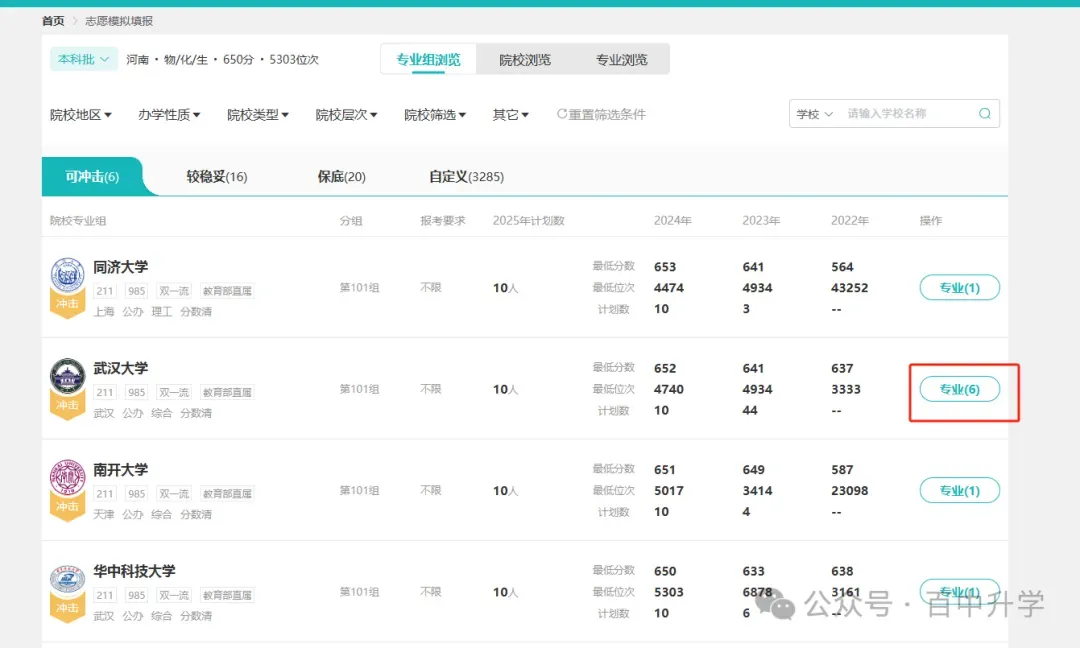 1、输入百中志愿网址(www.baizhongzy.com),在模拟志愿填报模块,选择选科并输入分数,点击智能填报,系统就会根据该分数推荐冲、稳、保 院校。