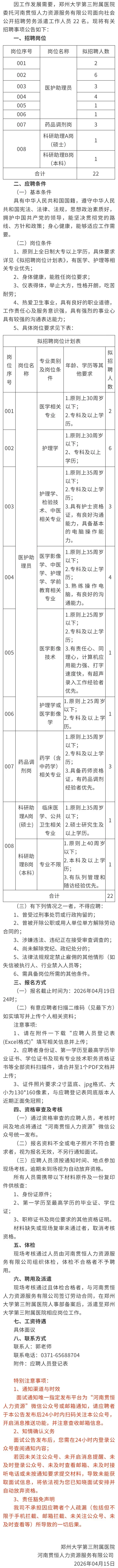 郑州大学第三附属医院人员招聘公告