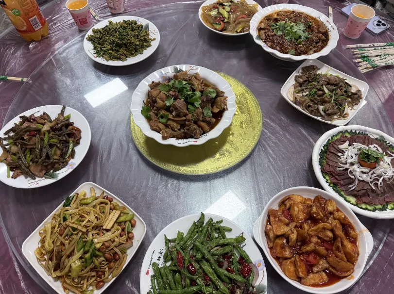 14日夜幕降临,团队于通天峡景区内附近留宿,围坐一堂品尝当地特色佳肴。长治牛肉紧实咸香,山西过油肉喷儿香,平顺焖菜丝软糯入味,还有党参炖鸡、山泉水豆腐等农家美味,每一口都是太行烟火的醇厚滋味,大家推杯换盏,畅聊工作生活,在欢声笑语中拉近彼此距离。