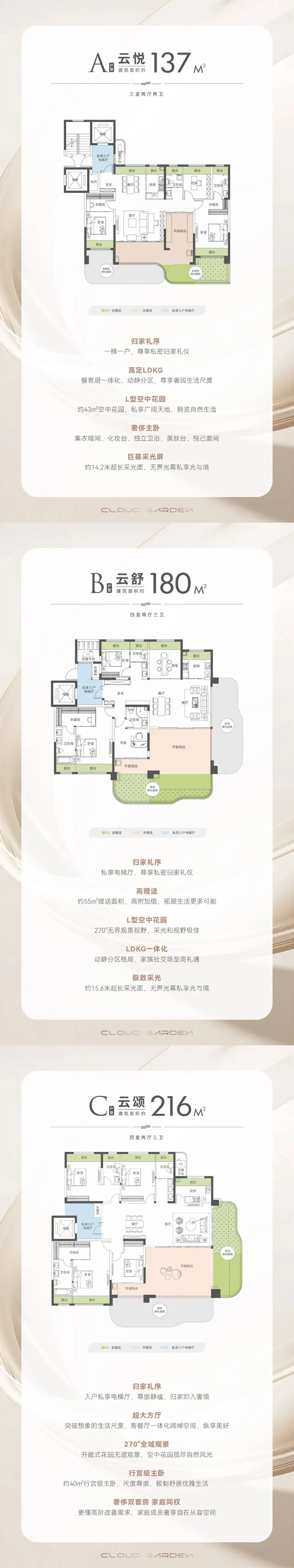 户型:137 ㎡-180 ㎡-216 ㎡-256㎡全四代宅