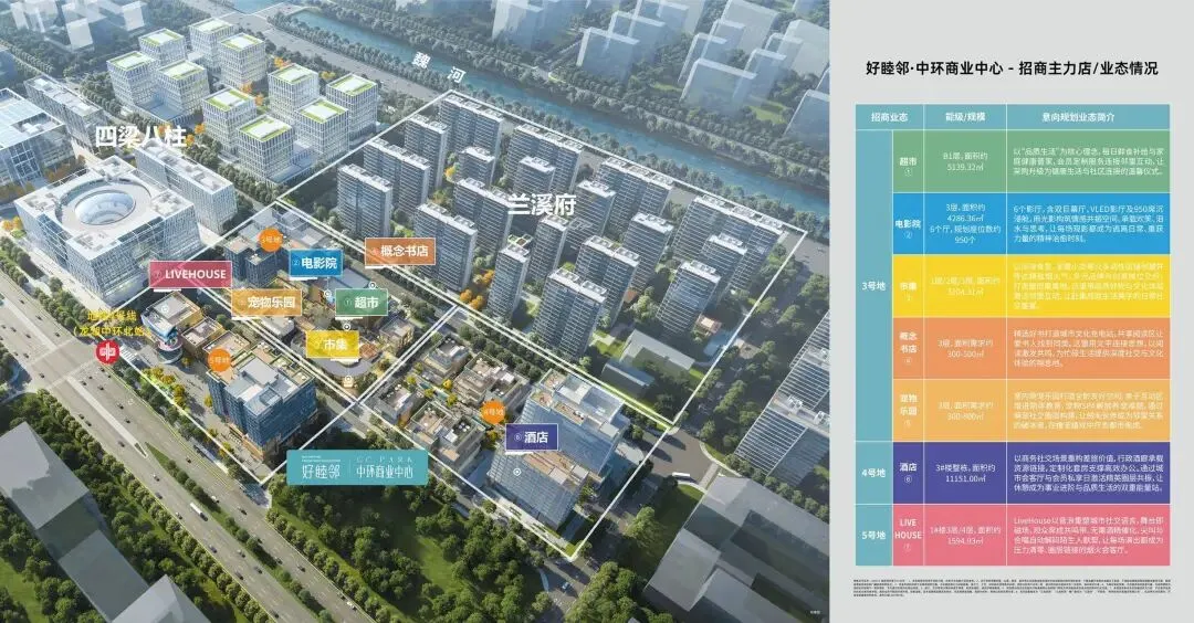商业:北侧中环商业中心,约4万方,5130平超市,好莱坞电影院,酒店,餐饮,品牌店,步行街等(已封顶、预计2026年下半年营业)