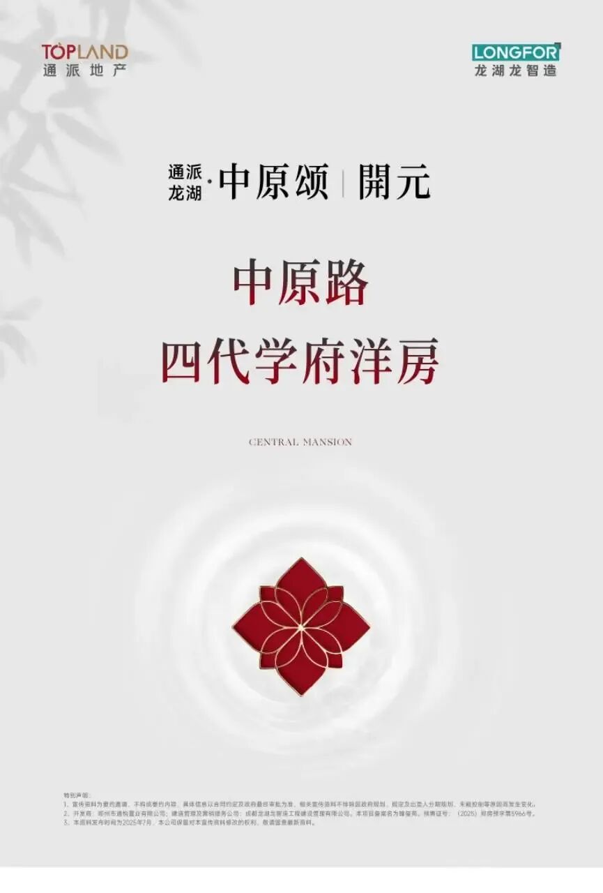 郑州主轴中原路,横贯东西,串联起政经、文化、资源、生态四大轴线,执掌城市未来潮向。通派龙湖・中原颂 | 開元屹立四轴中枢,于稀贵中原路上,绘就高奢生活的郑州样本。