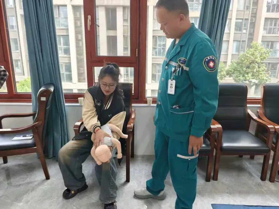 袁主任和张卫杰主治医师对海姆立克急救法、心肺复苏操作流程进行了详细的讲解和示范,强调了急救过程中的误区与注意事项,让教师们清晰掌握急救的关键步骤和操作要点。在实操演练环节,张卫杰主治医师利用人体模型现场演示心肺复苏、海姆立克急救法的标准动作,逐一指导教师们进行实操练习。老师们积极参与、认真模仿,反复练习按压位置、按压深度、施救手法等细节,袁主任和张医师针对大家操作中出现的问题及时纠正、耐心讲解,确保每一位教师都能规范、熟练地掌握急救技能。现场学习氛围浓厚,教师们主动提问、积极交流,切实将理论知识转化为实际操作能力。