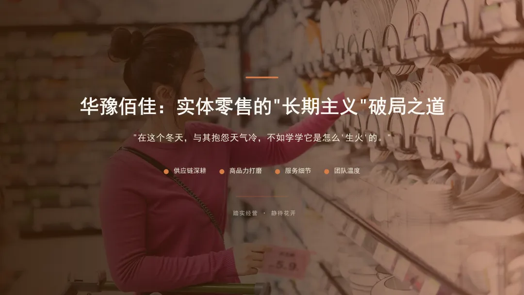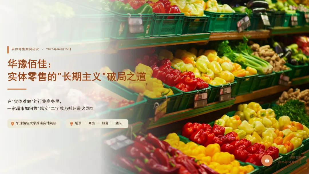 我整理了《华豫佰佳:实体零售的"长期主义"破局之道》的PPT培训资料,资料中帮助超市老板拆解,在"实体难做"的行业寒冬里,一家超市如何靠"踏实"二字成为郑州最火网红超市的核心逻辑。请转发给有需要的 超市老板,私信留言“华豫佰佳PPT”,加我微信,我发你一份《豫佰佳:实体零售的"长期主义"破局之道》电子版资料。