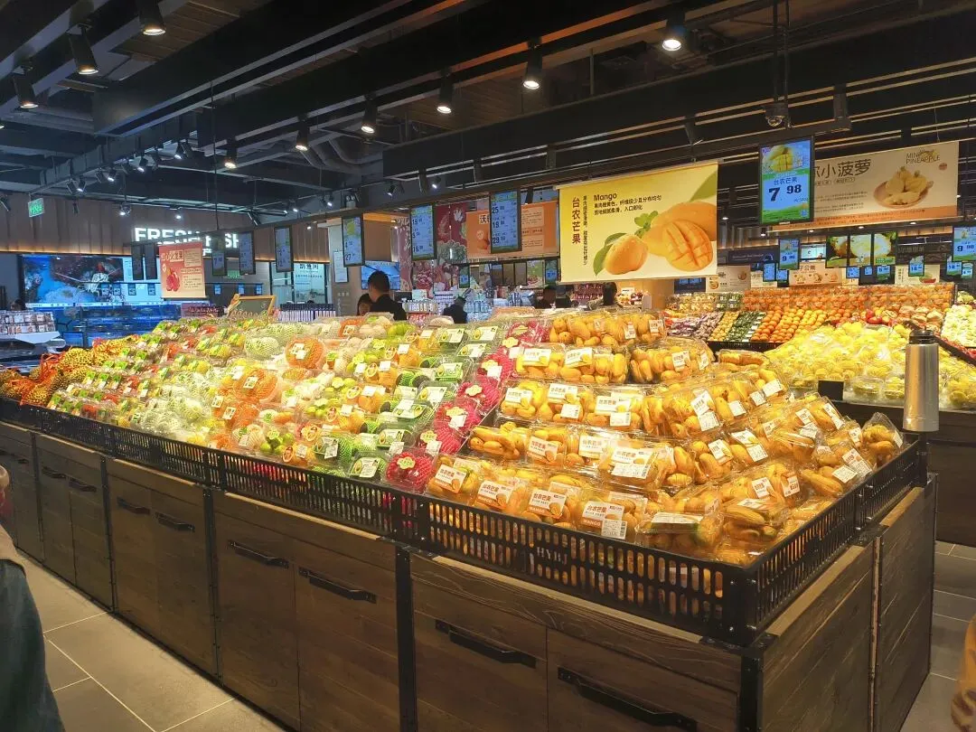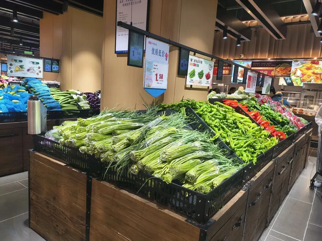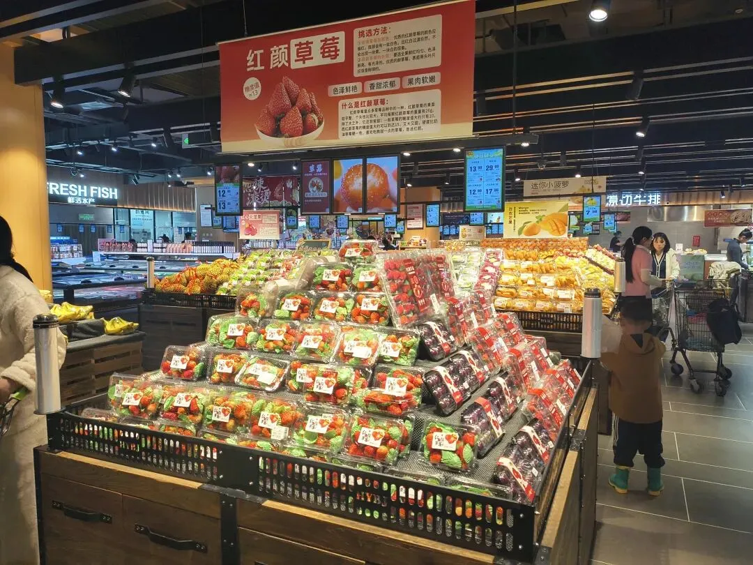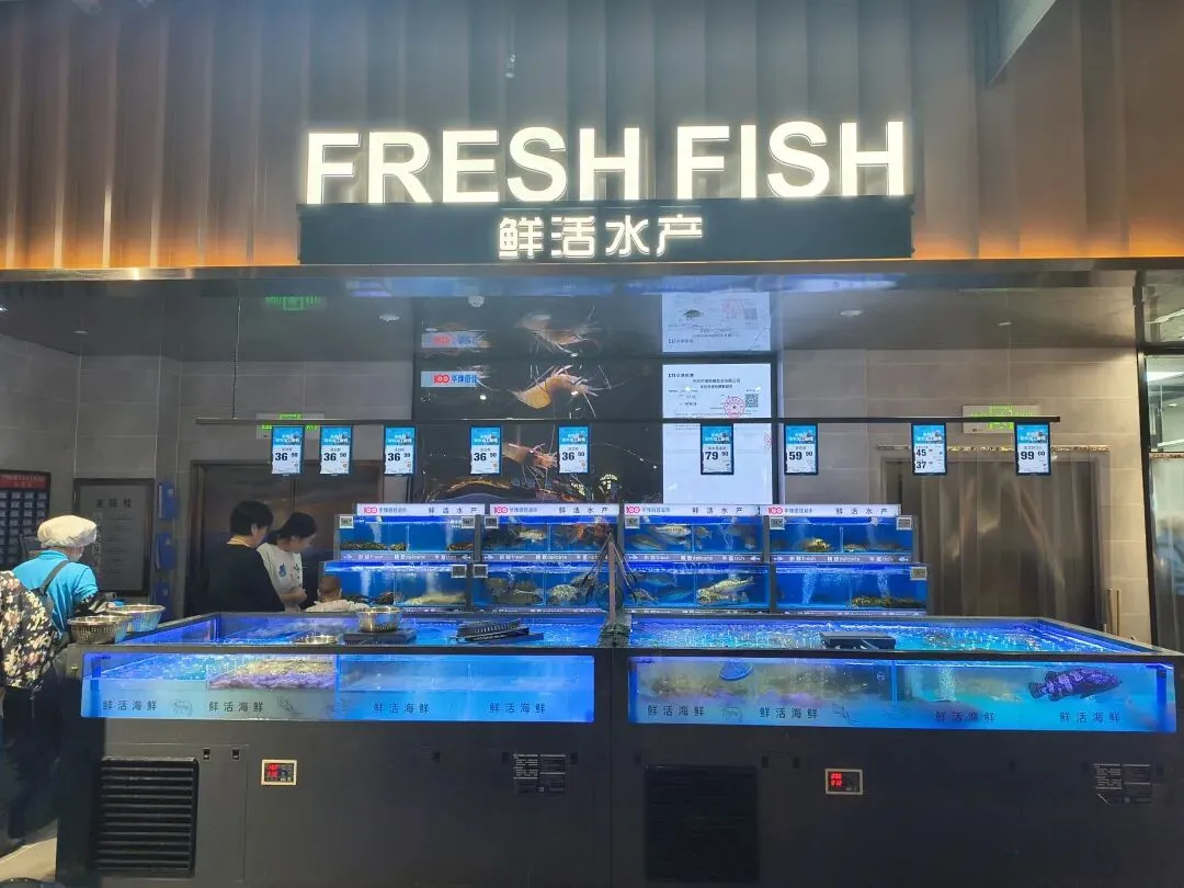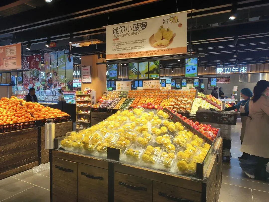 蔬菜水果颜色饱满,水产区活蹦乱跳。但真正让我在意的,是它背后的供应链逻辑。大学路店,可以说是其“供应链能力”的一个样板间。