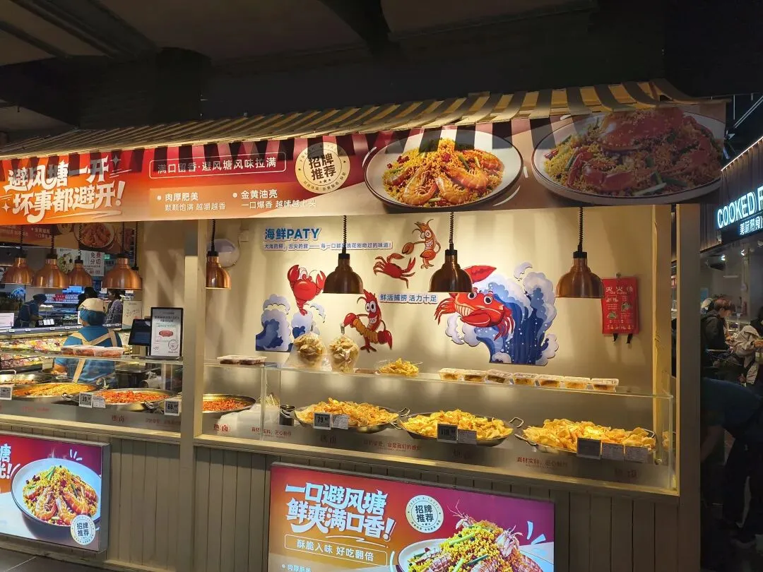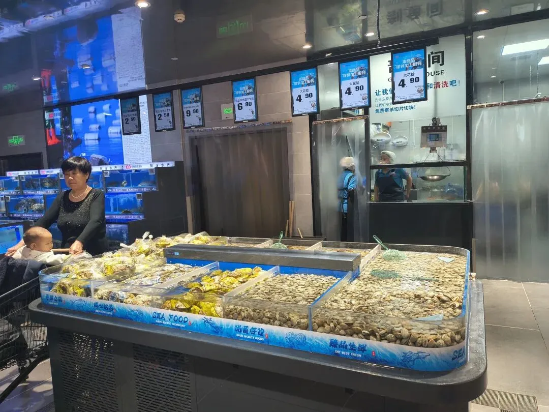 它不像老式超市那样一眼望穿。你走进去,会被烘焙的香气勾着走,会被活蹦乱跳的海鲜吸引过去,最后不知不觉把整个卖场走完。