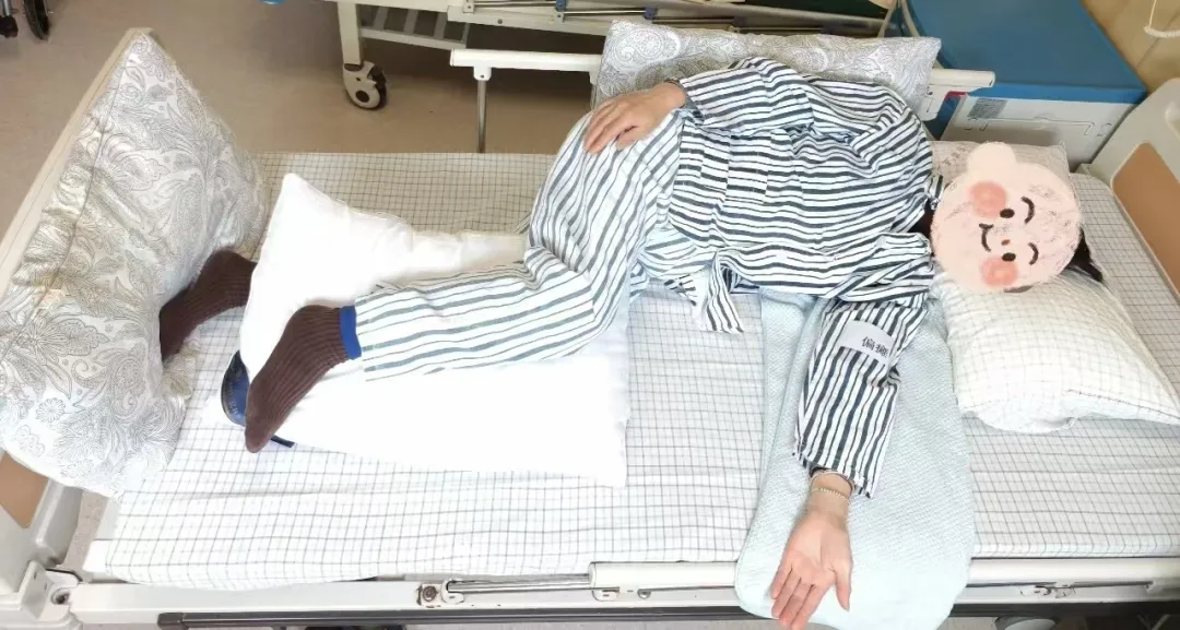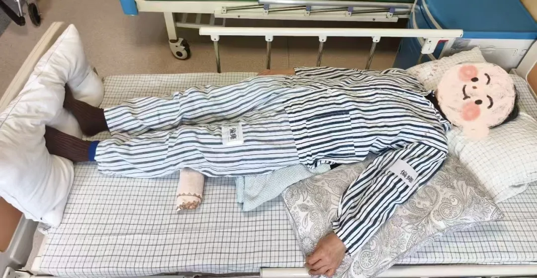 患侧下肢:屈膝,用枕头垫好,避免悬空。脚保持背伸。