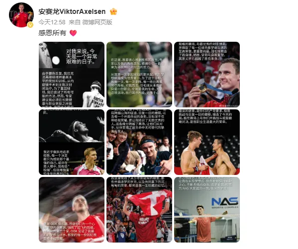 4月15日,羽毛球运动员安赛龙Viktor Axelsen宣布退役。因反复腰伤无法继续维持最高水平竞技,结束其16年的职业生涯。