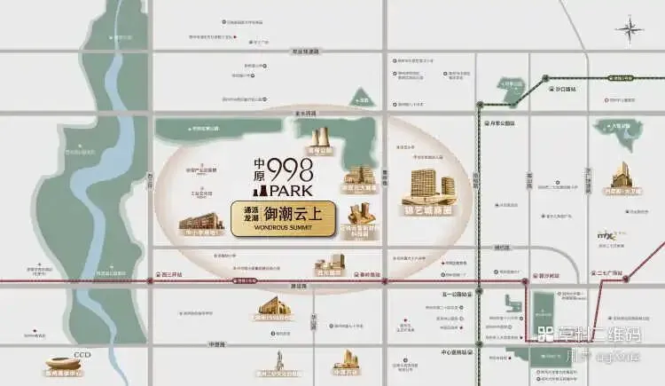 一街之隔新医元大健康(建设中)、泛锐云智科技园(建设中),与智识圈层为邻;中原998PARK规划两所教育用地,周边有建设路小学、锦艺小学、郑上路小学、六十六中、八十中等多所名校,助力菁英未来;直线约5km覆盖郑州市中心医院、郑大一附院河医院区等,为健康护航。(注:教育配套仅为资源介绍,不作为学区承诺,入学划片以政府公示为准)