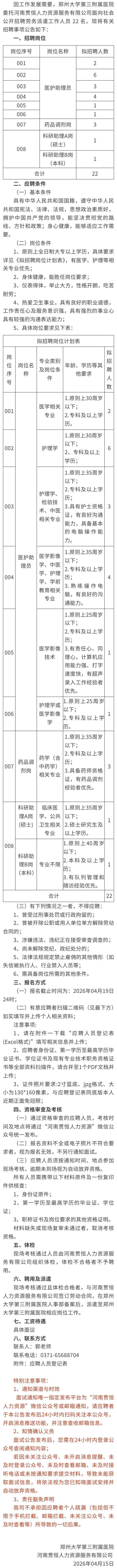 招22人!郑州大学第三附属医院